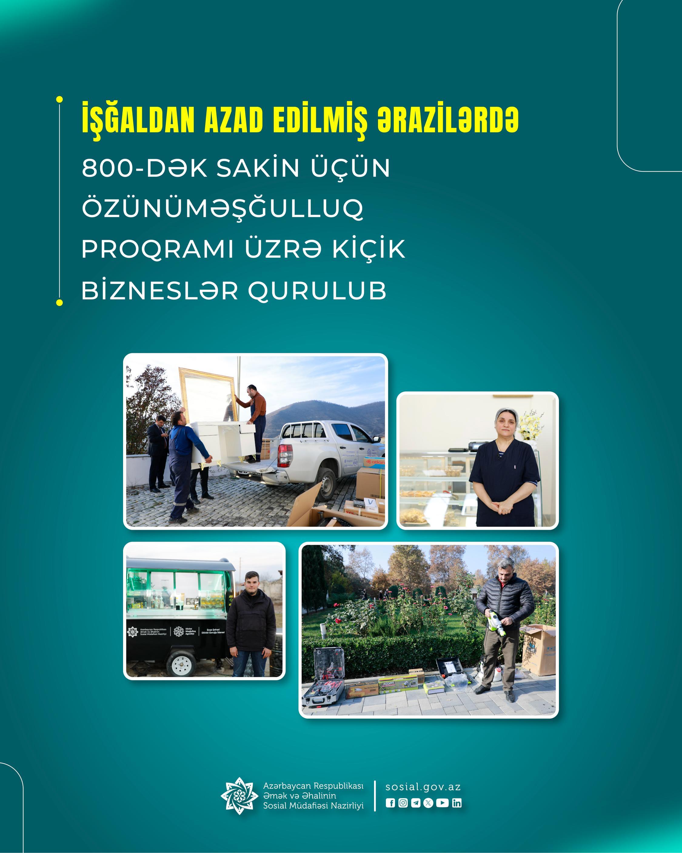 İşğaldan azad edilmiş ərazilərdə 800-dək sakin üçün özünüməşğulluq proqramı üzrə kiçik bizneslər qurulub