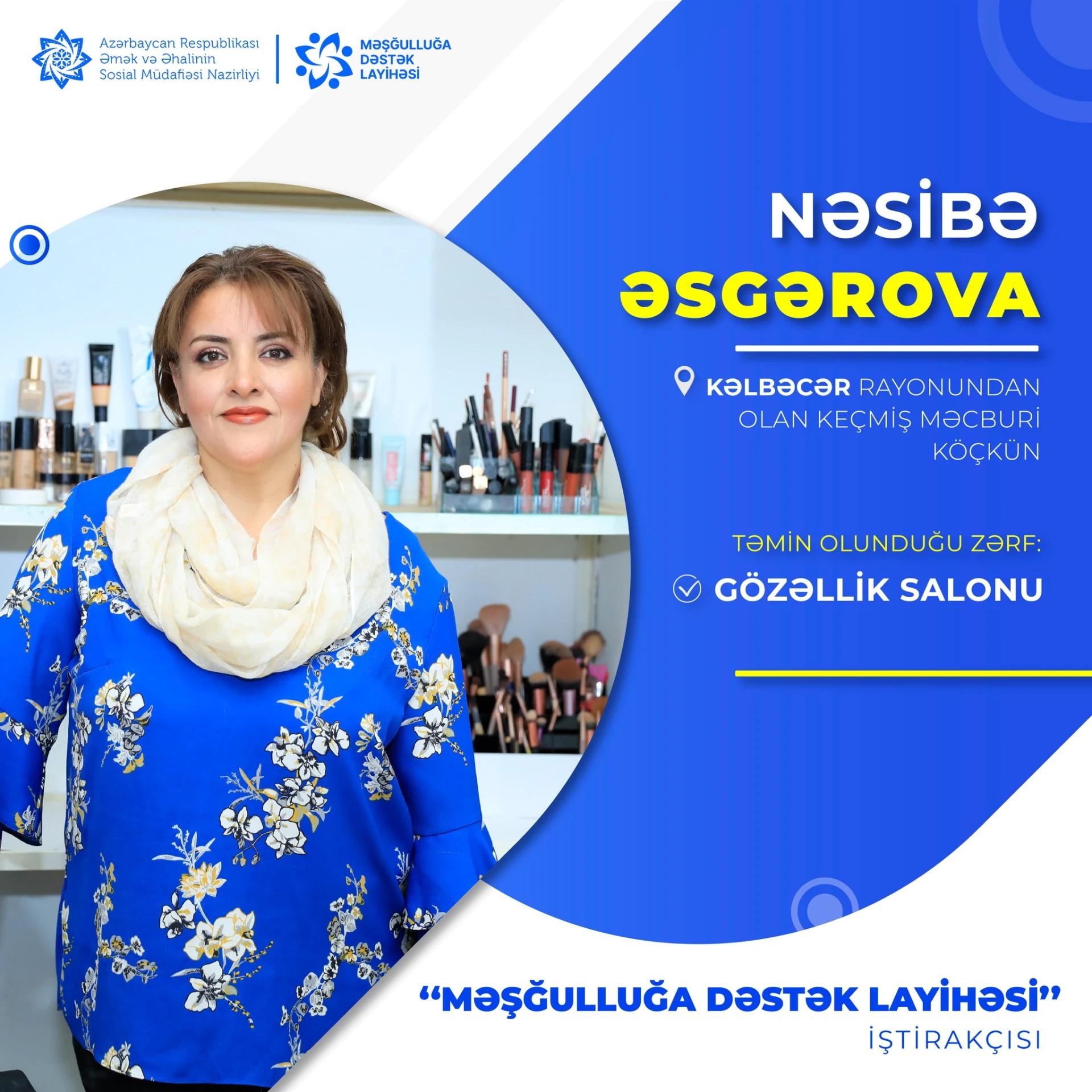 "Məşğulluğa Dəstək Layihəsi" çərçivəsində Kəlbəcər rayonundan olan keçmiş məcburi köçkün Nəsibə Əsgərova “gözəllik salonu” zərfi ilə təmin olunub