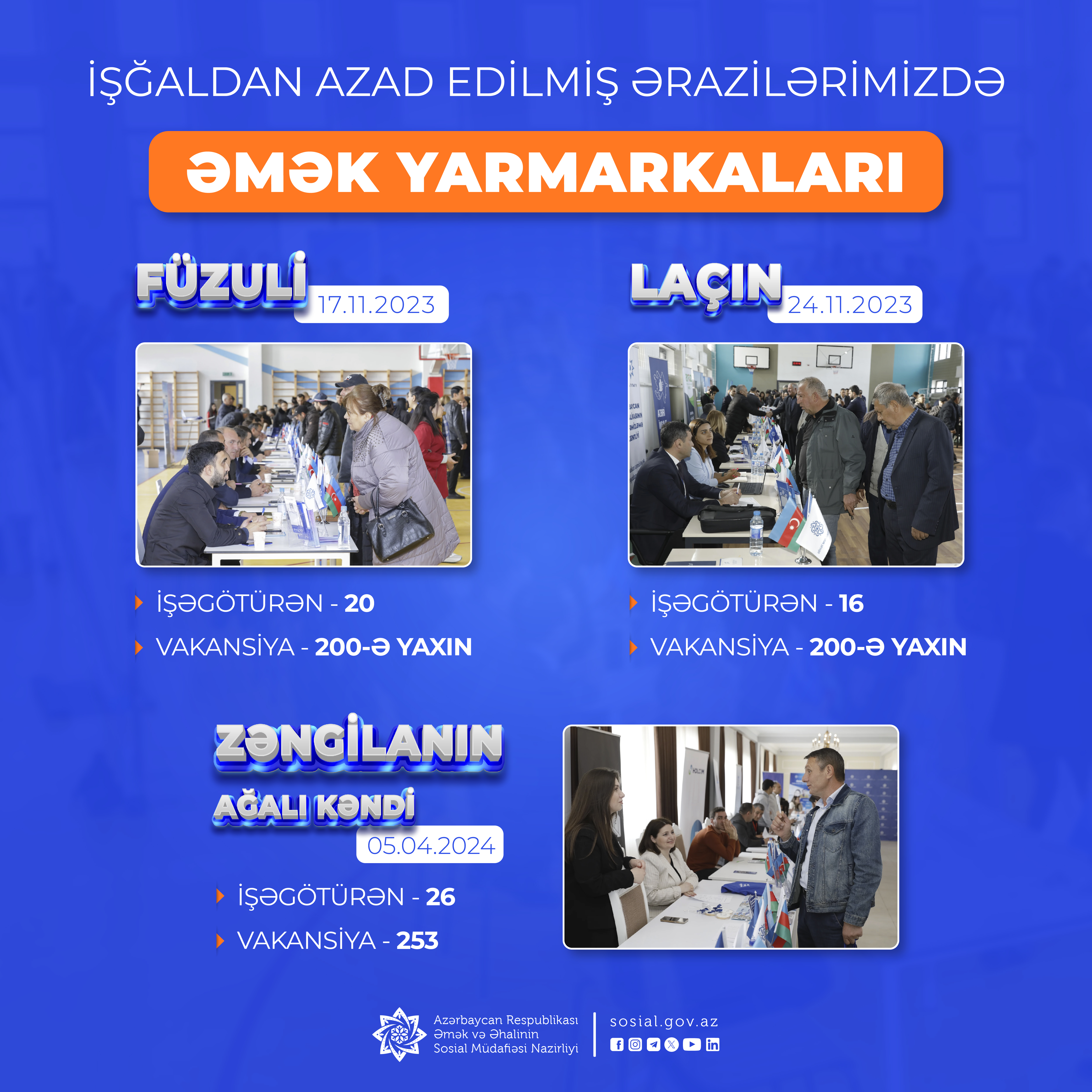 Böyük Qayıdış proqramı çərçivəsində işğaldan azad olunmuş ərazilərimizə köçürülən sakinlərin məşğulluğunun təmin edilməsi məqsədilə həyata keçirilən aktiv məşğulluq tədbirləri sırasında əmək yarmarkaları önəmli yer tutur