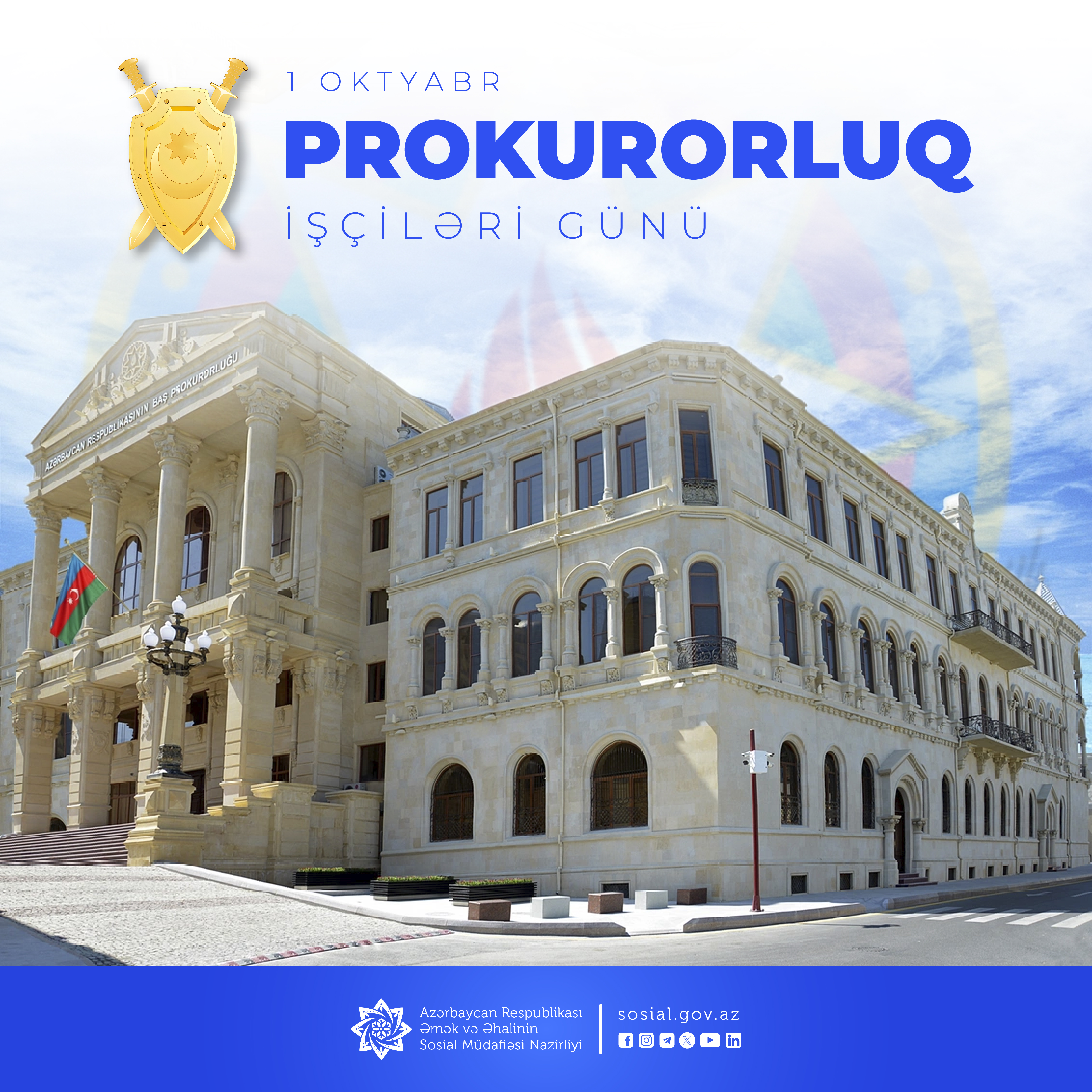 1 Oktyabr - Prokurorluq işçilərinin peşə bayramı günü və Milli Prokurorluğun yaradılmasının 107-ci ildönümüdür