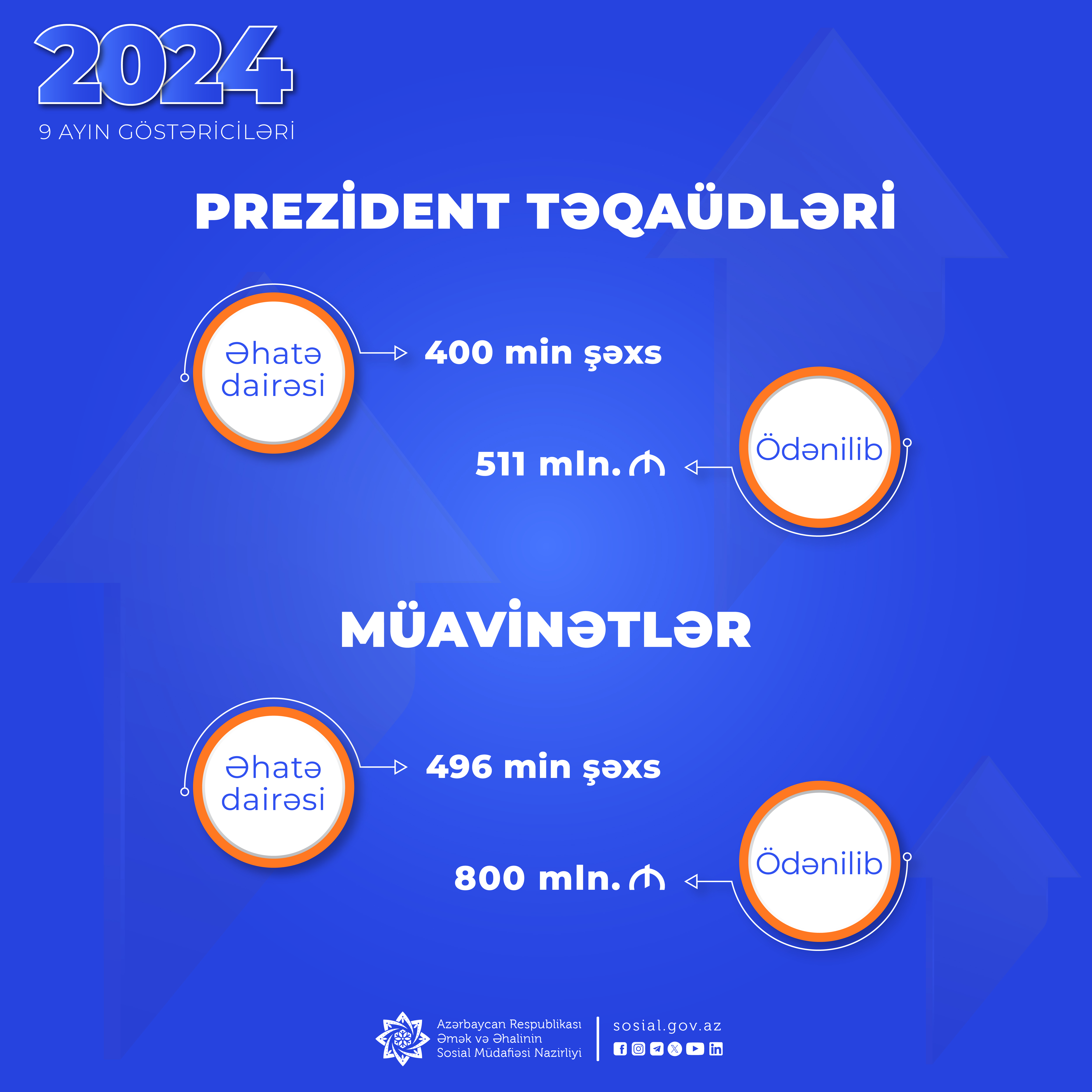 Müavinətlər üzrə 800 mln. manat, Prezident təqaüdləri üzrə 511 mln. manat ödənilib