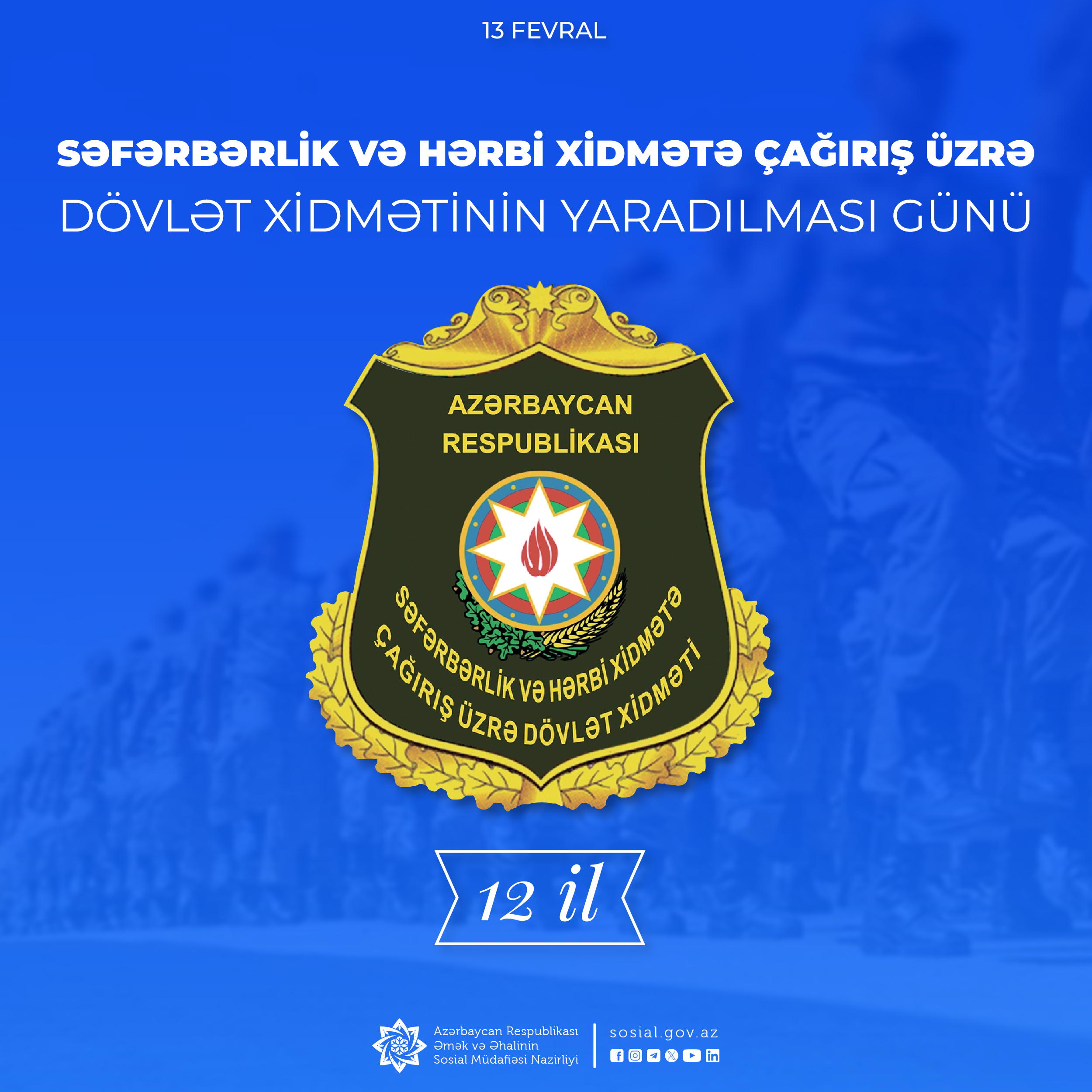 Bu gün Səfərbərlik və Hərbi Xidmətə Çağırış üzrə Dövlət Xidmətinin yaradılmasından 12 il ötür