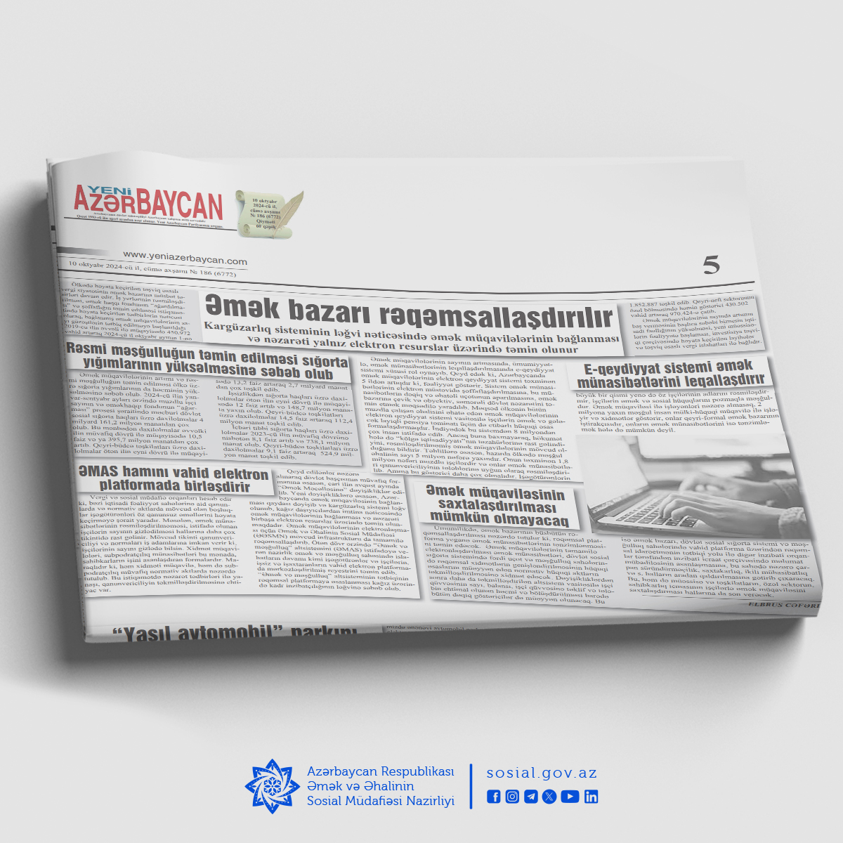 "Yeni Azərbaycan" qəzeti “Əmək və məşğulluq” altsisteminin (ƏMAS) əmək münasibətlərində şəffaflığın təmin olunmasında, məşğulluq xidmətlərinin səmərəliliyinin artırılmasında, insan resurslarının effektiv idarəçiliyində mühüm rolundan bəhs edən məqalə dərc edib