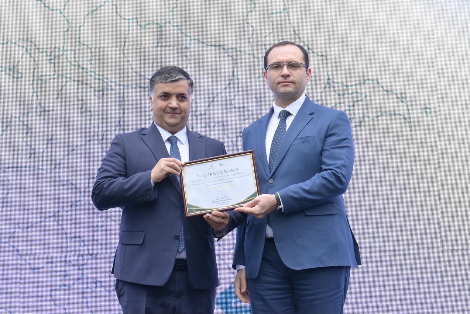 Qeyd edək ki, Aqrar Biznes Festivalında fəal iştirakına və tədbirin təşkilinə göstərdikləri dəstəyə görə bir sıra qurum və təşkilatların nümayəndələrinə təşəkkürnamələr təqdim edilib.