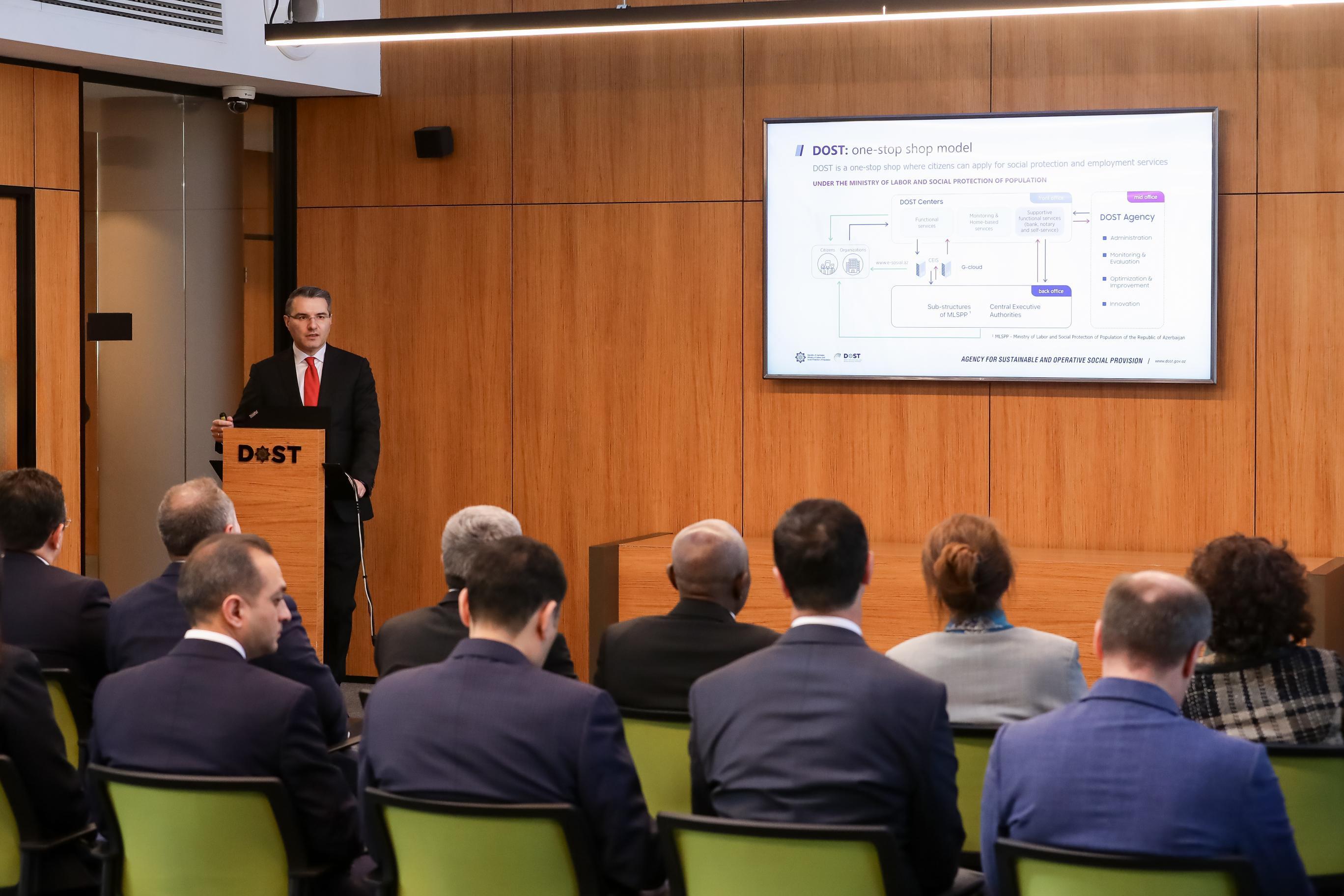 Əmək və Əhalinin Sosial Müdafiəsi Nazirliyinin tabeliyindəki DOST Agentliyində Beynəlxalq Əmək Təşkilatının (BƏT) Baş direktoru Jilber Hunqbonun başçılıq etdiyi nümayəndə heyəti ilə görüş olub. Görüşdən əvvəl nümayəndə heyəti 1 saylı DOST Mərkəzi, burada əhaliyə göstərilən xidmətlərlə tanış olub. Onlar üçün DOST Konsepsiyasına və Nazirliyin rəqəmsal xidmətlərinə dair təqdimatlar edilib.