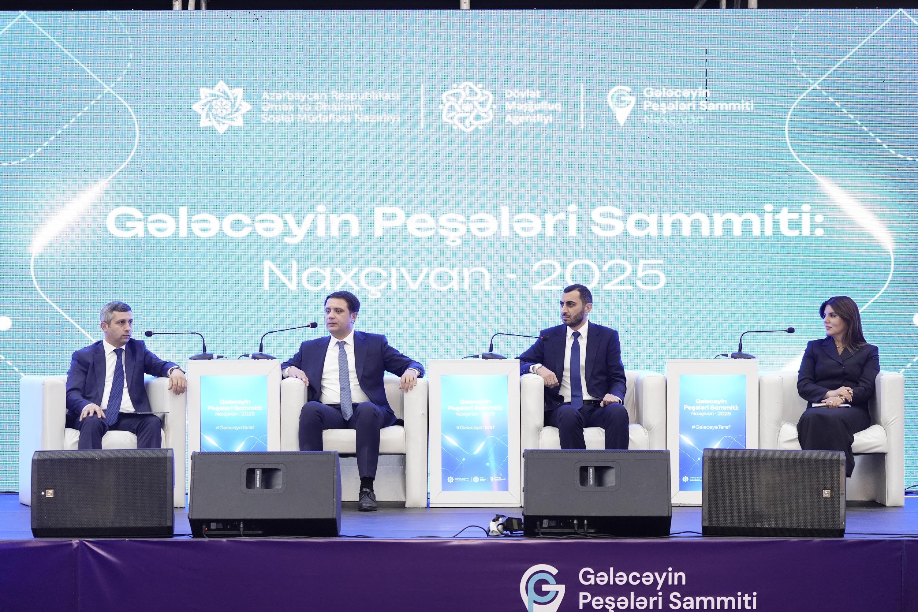 Naxçıvanda təşkil olunmuş Gələcəyin Peşələri Sammiti çərçivəsində Əmək və Əhalinin Sosial Müdafiəsi Nazirliyi yanında Dövlət Əmək Müfəttişliyi Xidməti, Nazirliyin tabeliyində Dövlət Məşğulluq Agentliyi və Dövlət Sosial Müdafiə Fondunun birgə təşkilatçılığı ilə “Biznes üçün sosial-əmək ekosistemi: Naxçıvanda yeni modellər” adlı panel müzakirəsi keçirilib.
