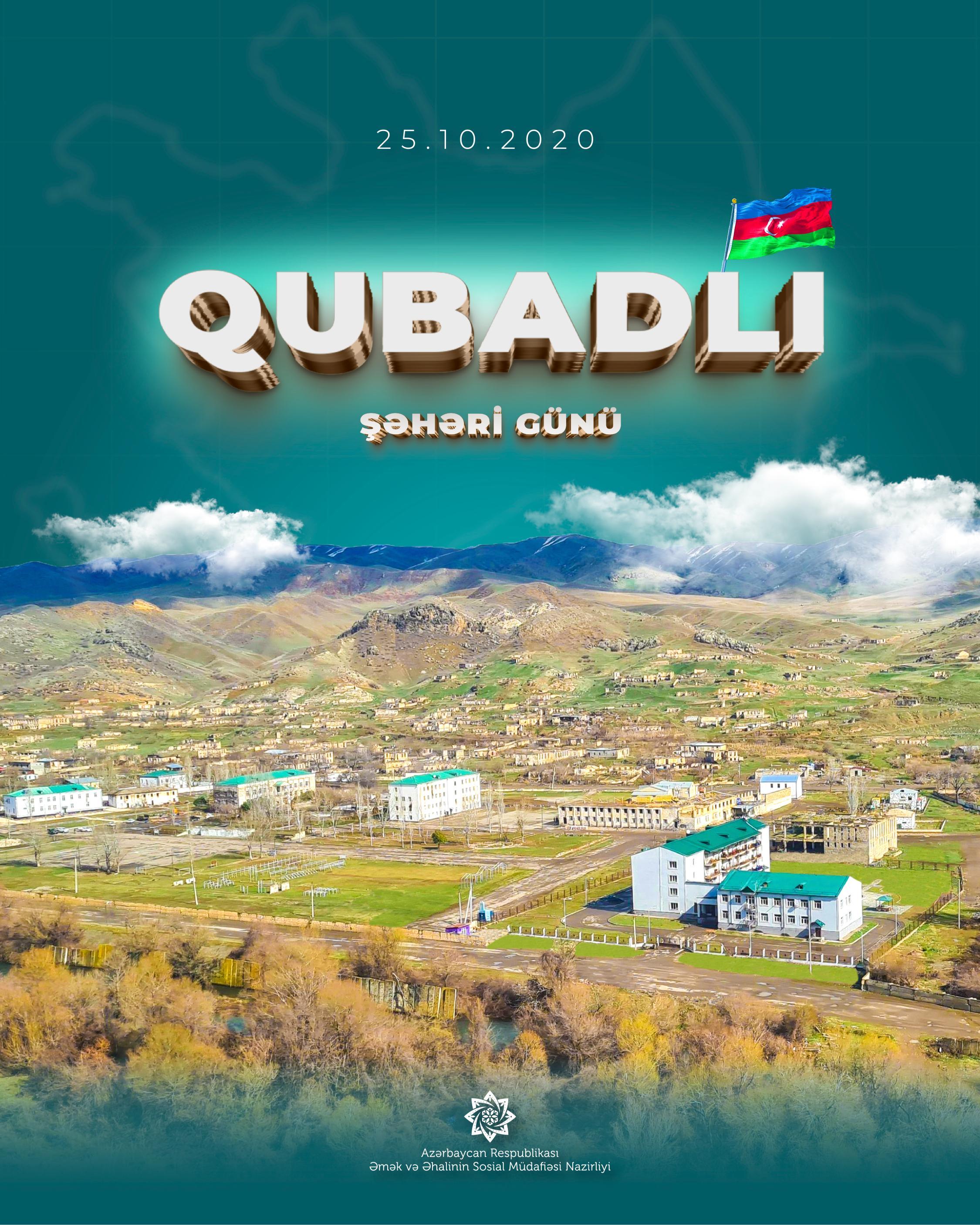 Dövlətimizin başçısının Sərəncamlarına əsasən 25 oktyabr - Qubadlı Şəhəri Günü kimi qeyd olunur və “Qubadlının azad olunmasına görə” medalı təsis edilib.