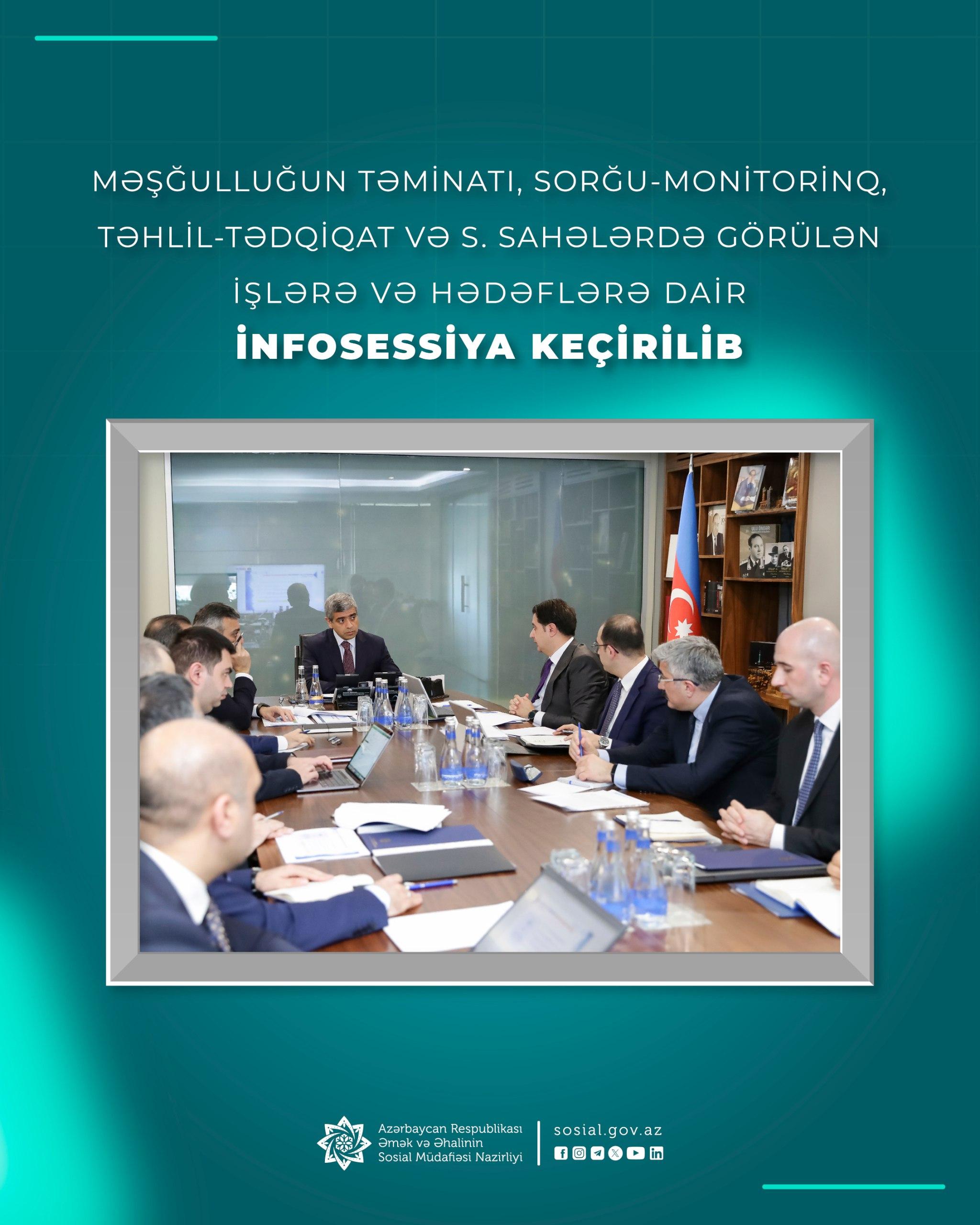 İnfosessiyada son bir ildə Agentliyin ümumilikdə 400 mindən çox şəxsi aktiv məşğulluq proqramlarına cəlb etdiyi, onlardan 160 min nəfər işsiz və işaxtaran şəxsin işlə təmin edildiyi, 15,6 min şəxsin peşə hazırlığına cəlb edildiyi diqqətə çatdırılıb. Bu il isə qurumun işlə təminat göstəricisinin 165 minə çatdırılmasının nəzərdə tutulduğu bildirilib. İşğaldan azad olunan ərazilərə köçürülən sakinlərdən artıq 86 faizinin məşğulluğunun təmin edildiyi, bu sahədə tədbirlərin davam etdirildiyi qeyd olunub. Həssas qrupların əmək bazarına çıxışının dəstəklənməsi, məşğulluq tədbirləri üzrə rəqəmsallaşmanın əhatə dairəsinin genişləndirilməsi sahələrində görülən işlər diqqətə çatdırılıb.