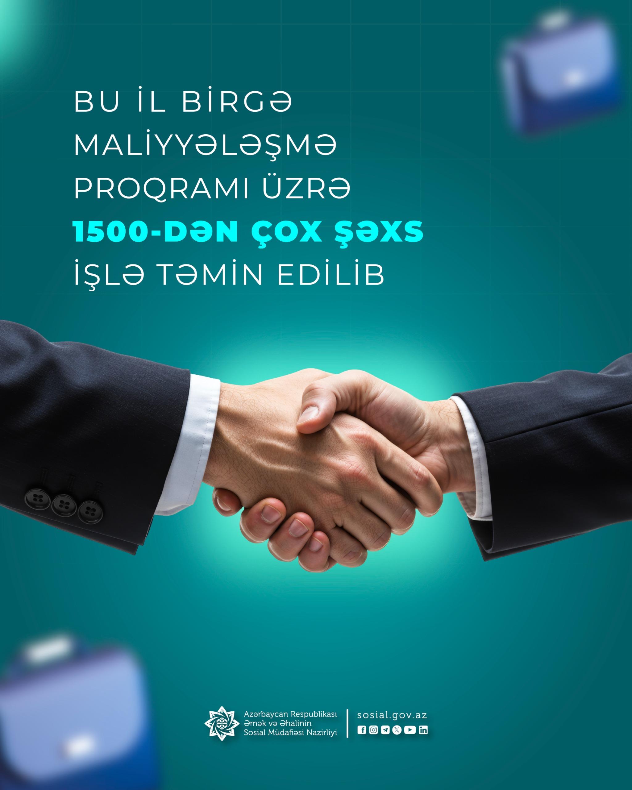 Əmək və Əhalinin Sosial Müdafiəsi Nazirliyinin tabeliyində Dövlət Məşğulluq Agentliyinin icra etdiyi “İşəgötürənlə birgə işçilərin əməkhaqqının maliyyələşdirilməsi” proqramı çərçivəsində 2025-ci ilin 10 ayı ərzində 1504 şəxs işlə təmin olunub.
