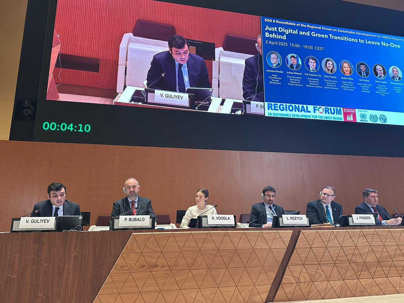 Beynəlxalq Əmək Təşkilatı, Beynəlxalq Telekommunikasiya İttifaqı və BMT-nin Avropa İqtisadi Komissiyasının birgə təşkil etdiyi forumda Əmək və Əhalinin Sosial Müdafiəsi Nazirliyini Dövlət Əmək Müfəttişliyi Xidmətinin rəisi Vəli Quliyev təmsil edib.
