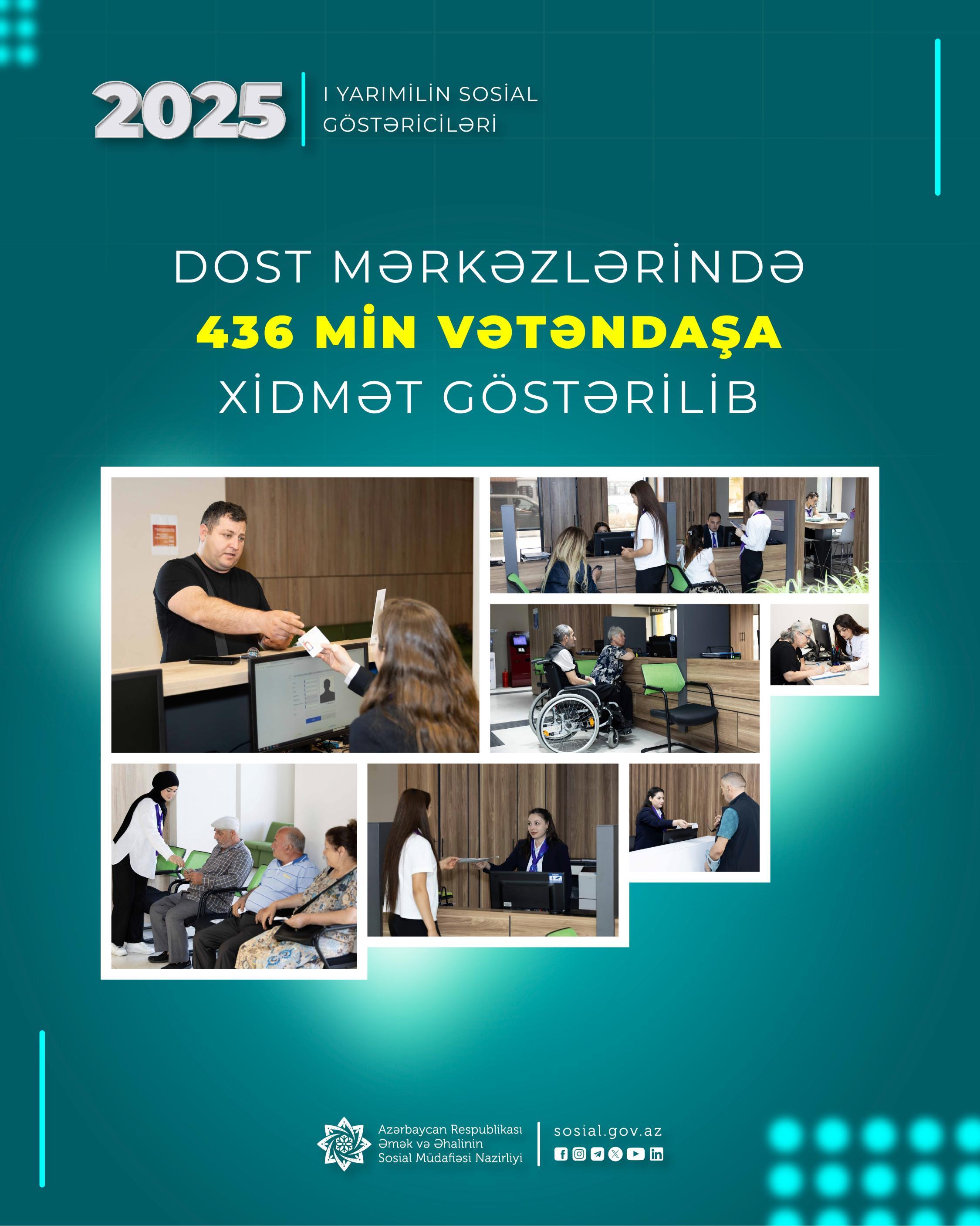Bu ilin birinci yarımilində DOST mərkəzlərində 436 min vətəndaşa xidmət göstərilib.