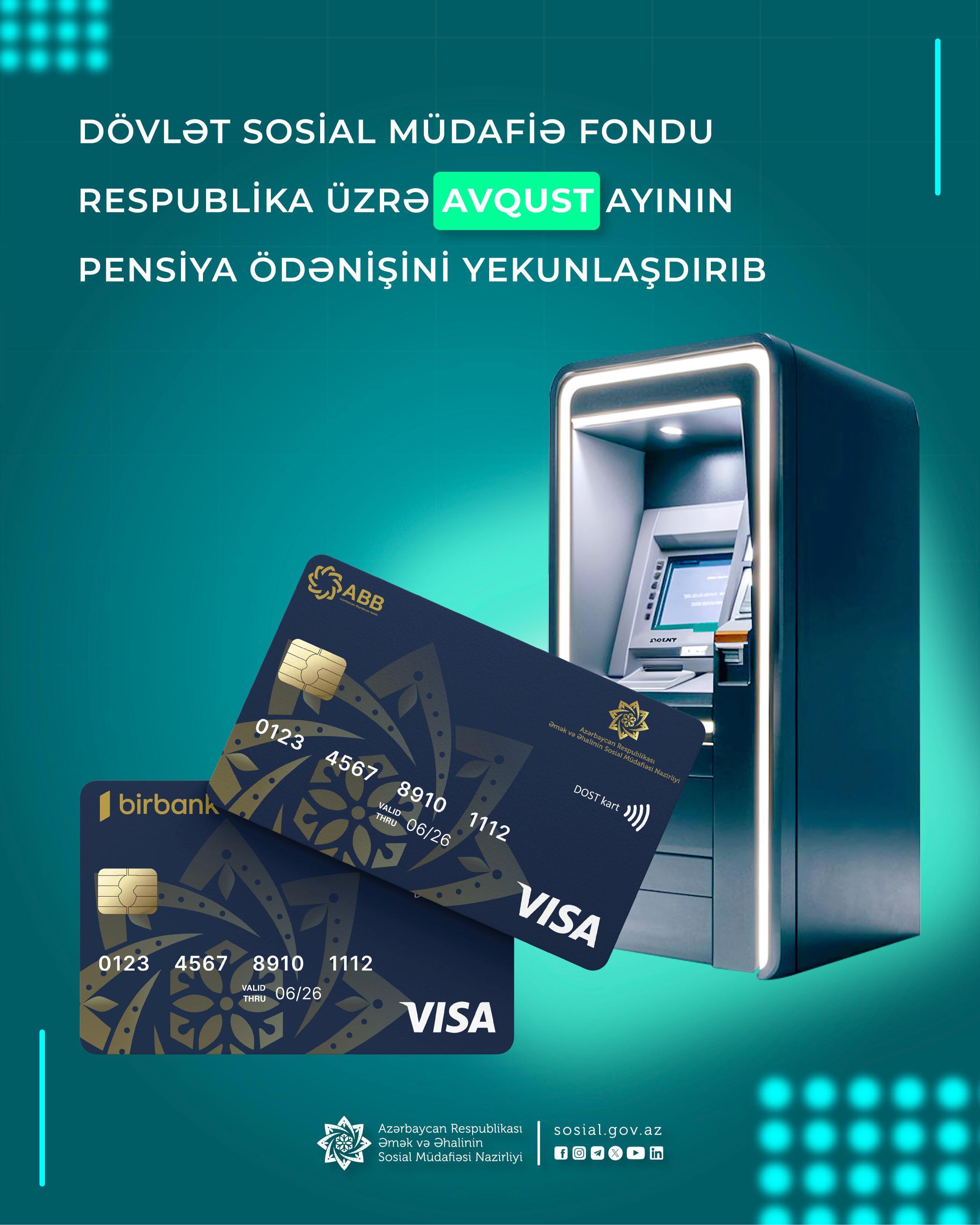 Avqustun 13-də Bakı və Sumqayıt şəhərləri, Abşeron rayonu və Naxçıvan MR-də, bu gün isə ölkəmizin bölgələrində yaşayan şəxslərin avqust ayı üzrə pensiyaları, habelə güzəştli şərtlərlə təyin edilmiş pensiyalar ödənilib.