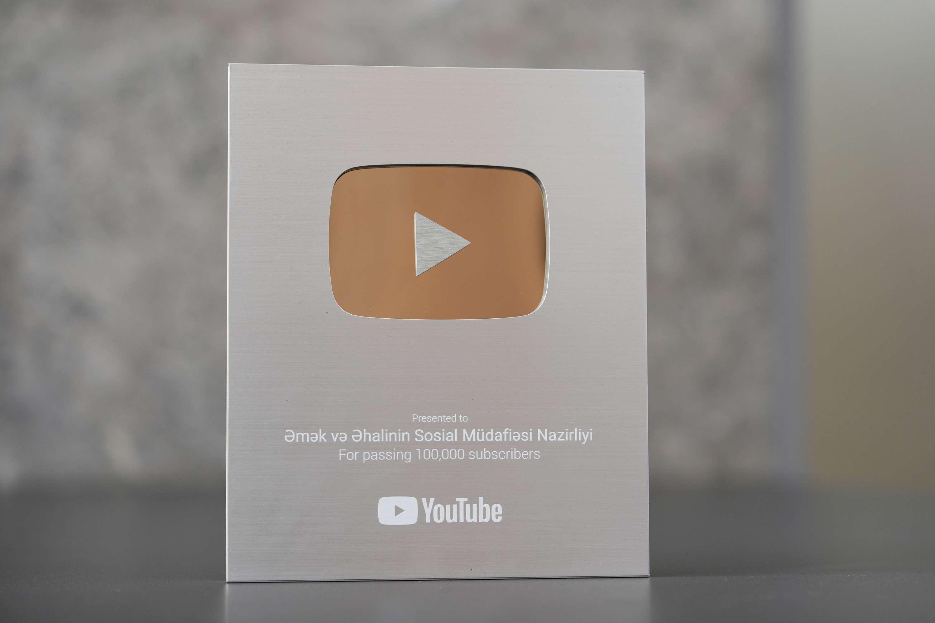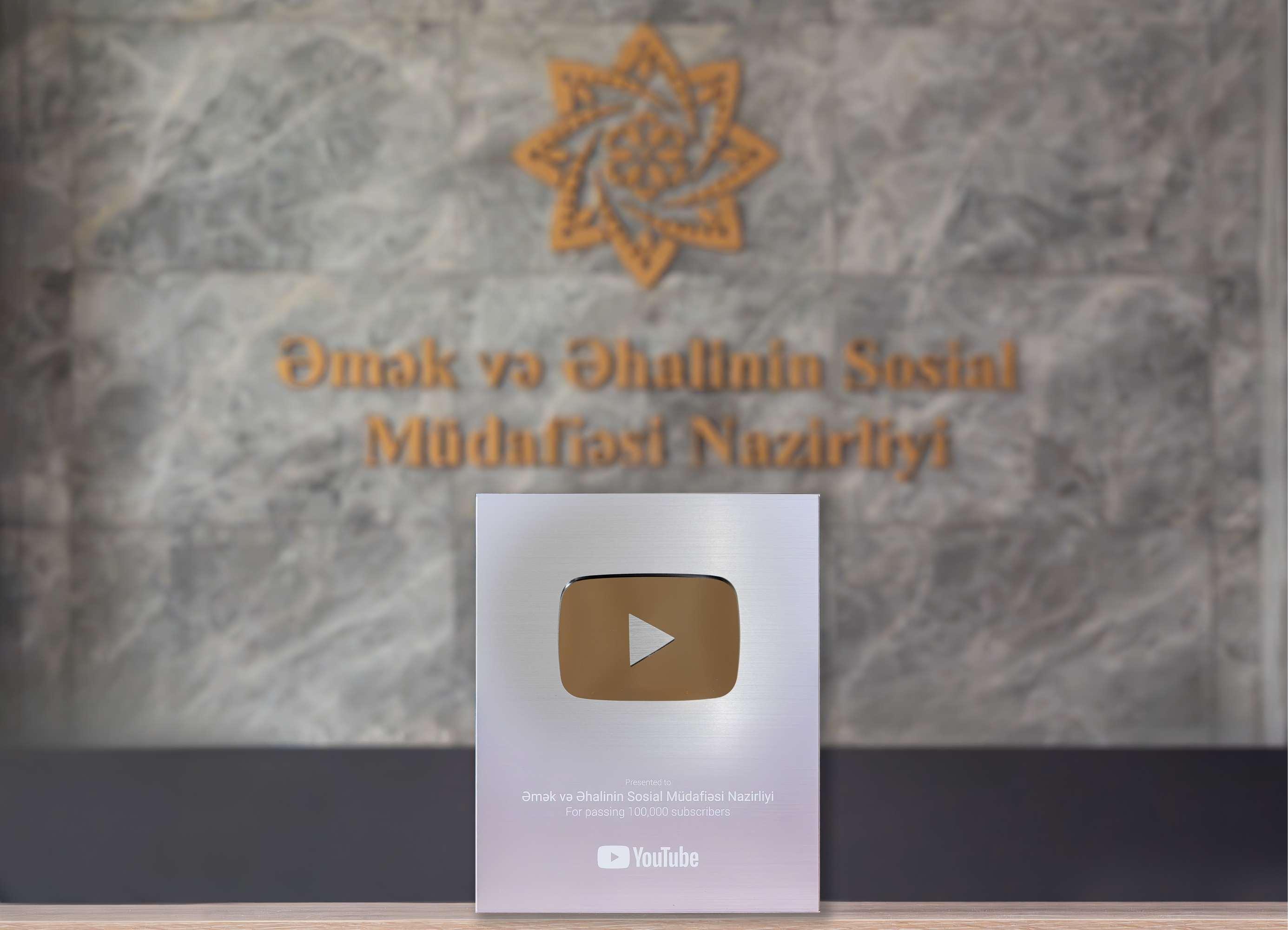 Əmək və Əhalinin Sosial Müdafiəsi Nazirliyinin rəsmi “Youtube” kanalı izləyici sayı 100 mini ötdüyü üçün qurum “Youtube” platformasının gümüş plaketinə layiq görülüb.