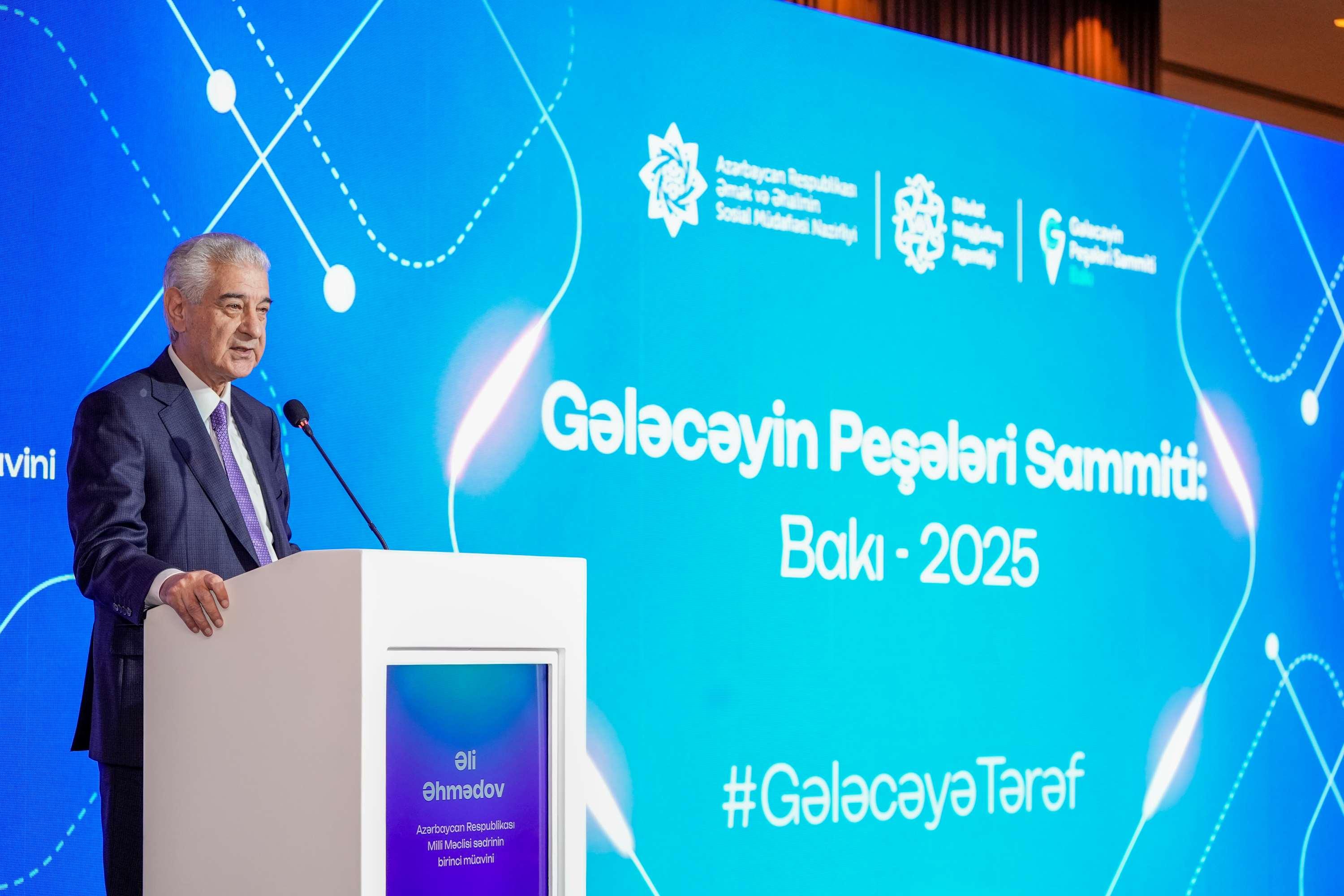 Əli Əhmədov yeni texnologiyaların, xüsusilə də süni intellektin təsiri altında yaranan yeni peşə bacarıqlarının mənimsənilməsi üçün gənc nəslin təşviq olunmasının vacibliyini vurğulayıb və bu istiqamətdə Gələcəyin Peşələri Sammiti kimi platformalara hər zaman ehtiyac olduğunu bildirib.