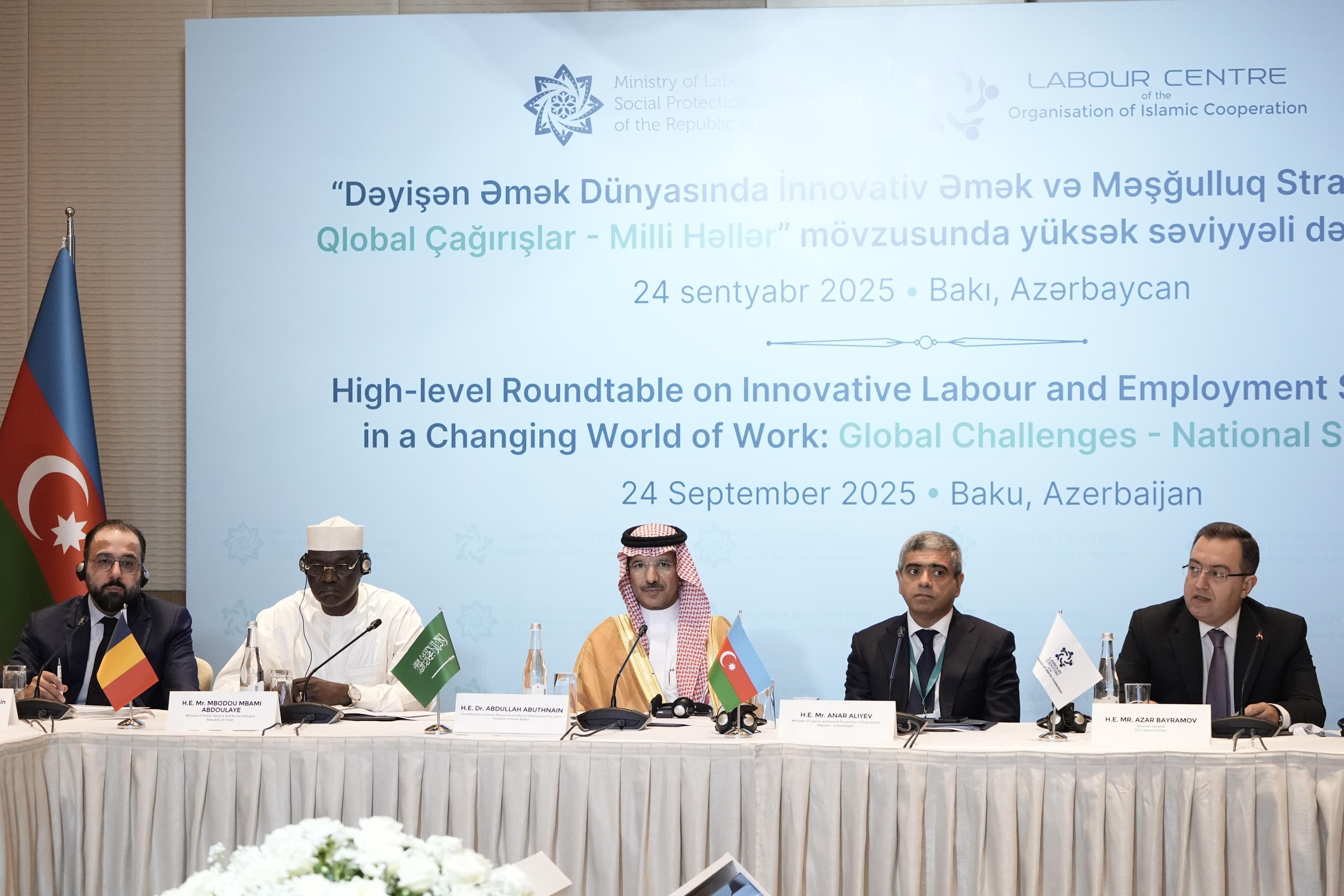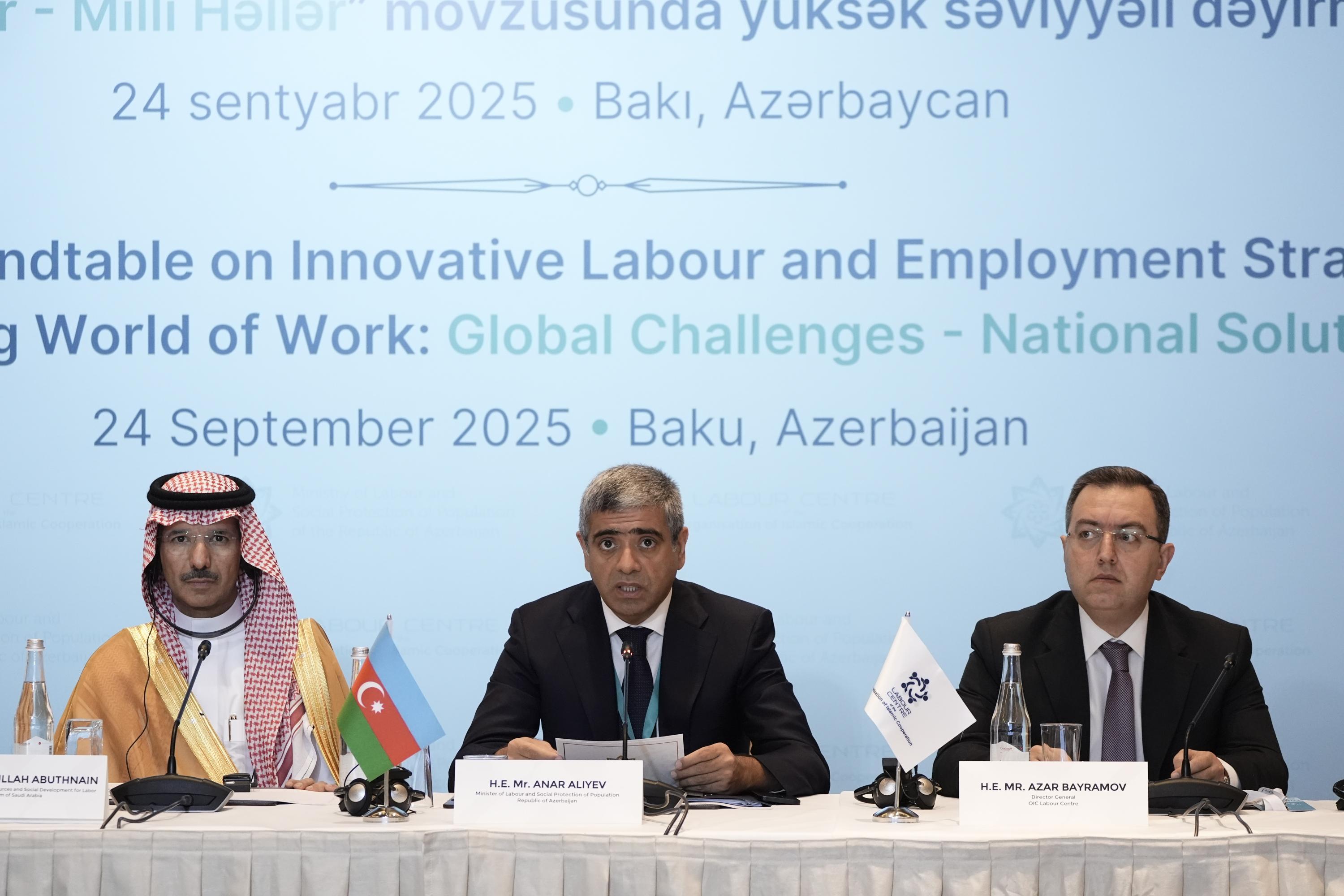 İslam Əməkdaşlıq Təşkilatına (İƏT) üzv dövlətlərin əmək nazirlərinin və nümayəndə heyətlərinin Bakıya səfəri çərçivəsində yüksək səviyyəli dəyirmi masa keçirilib.