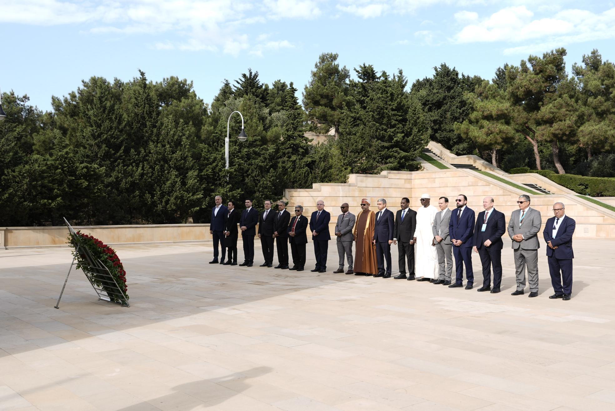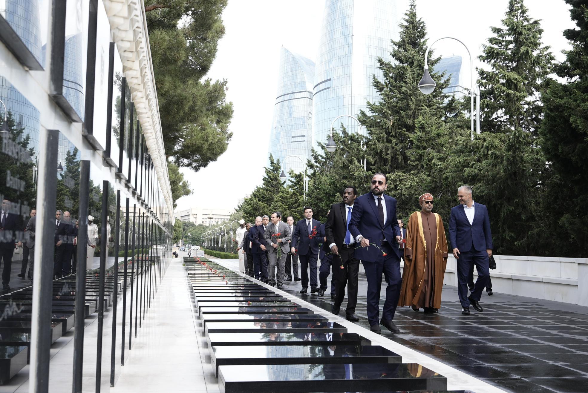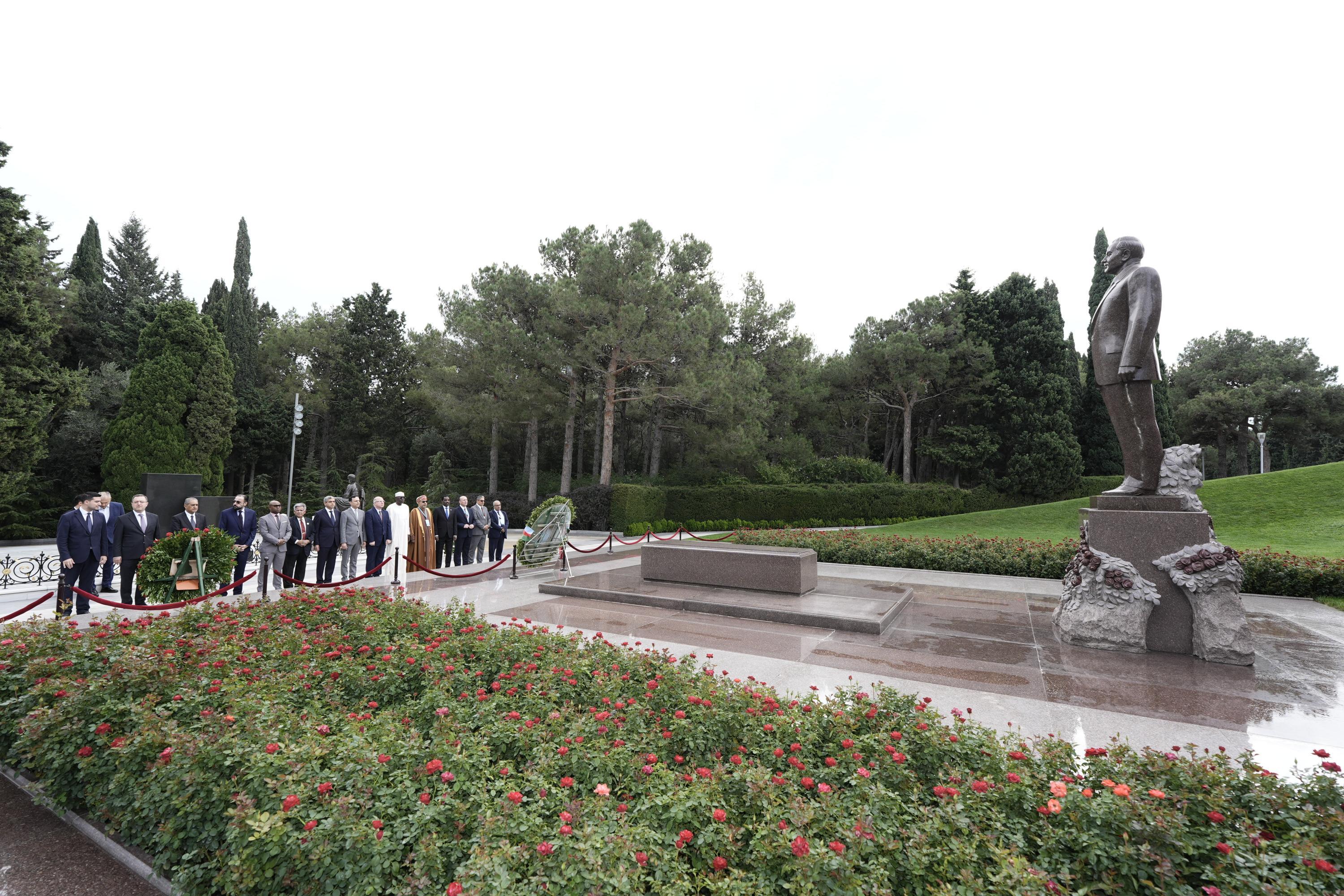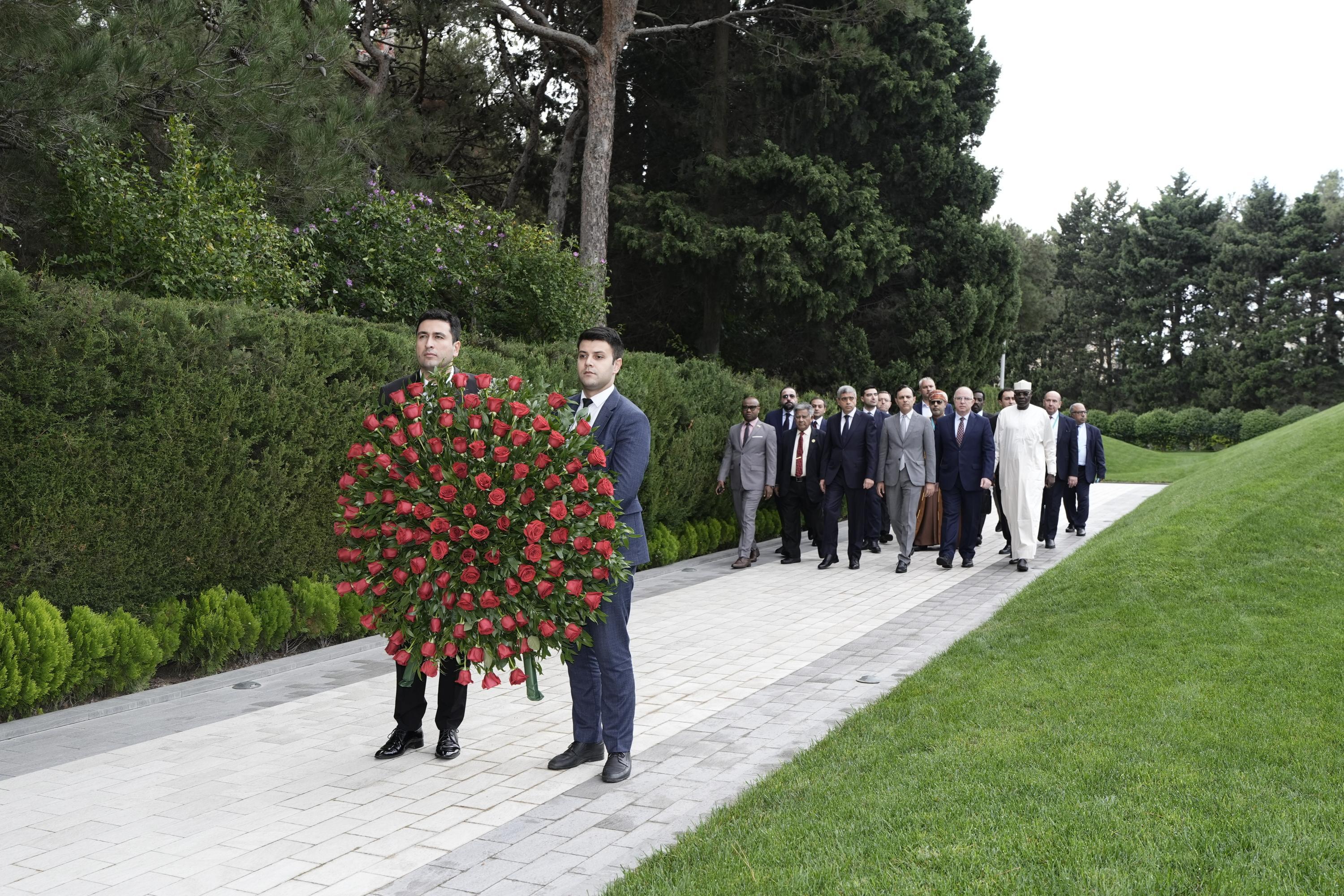 Ölkəmizdə səfərdə olan İslam Əməkdaşlıq Təşkilatına üzv dövlətlərin əmək nazirləri və nümayəndə heyətləri Fəxri xiyabana gələrək Ümummilli Lider Heydər Əliyevin məzarını ziyarət ediblər. Ulu Öndərin xatirəsi ehtiramla yad edilib, məzarı önünə əklil və gül dəstələri qoyulub.