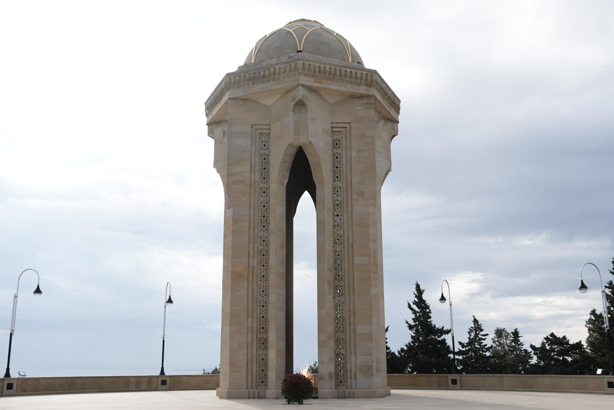 Daha sonra qonaqlar Şəhidlər Xiyabanını ziyarət edib, ölkəmizin müstəqilliyi və suverenliyi uğrunda canlarını fəda etmiş şəhidlərimizin xatirəsini hörmətlə anaraq məzarları üzərinə gül dəstələri, “Əbədi məşəl” abidəsinin önünə əklil qoyublar.