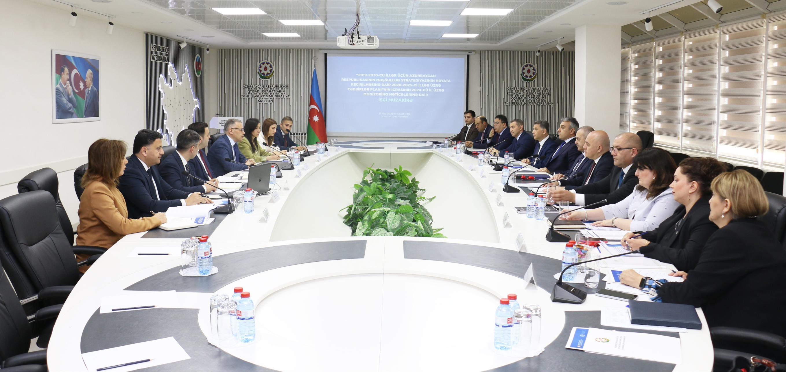 İqtisadi İslahatların Təhlili və Kommunikasiya Mərkəzində (İİTKM) “2019-2030-cu illər üçün Azərbaycan Respublikasının Məşğulluq Strategiyasının həyata keçirilməsinə dair 2020-2025-ci illər üzrə Tədbirlər Planı”nın icrasının 2024-cü il üzrə monitorinq nəticələri müzakirə edilib.