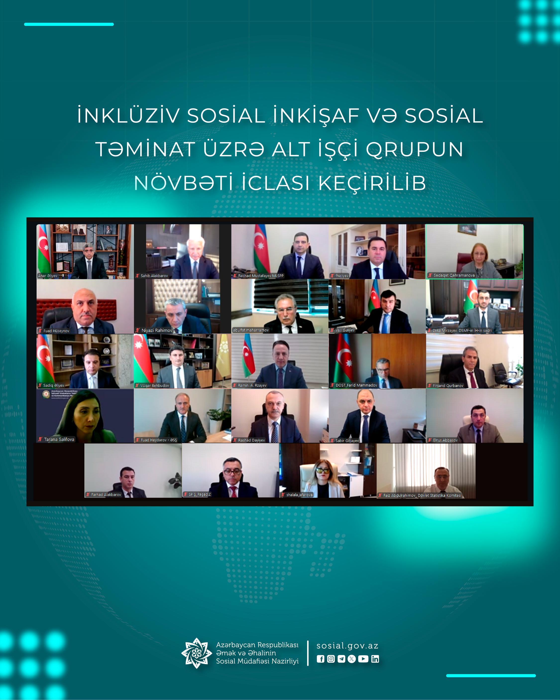 Prezident İlham Əliyevin Sərəncamına əsasən “Azərbaycan Respublikasının 2027–2030-cu illərdə sosial-iqtisadi inkişaf Strategiyası”nın hazırlanması məqsədilə Nazirlər Kabinetinin Sərəncamı ilə yaradılmış İnklüziv sosial inkişaf və sosial təminat üzrə Alt İşçi qrupun növbəti iclası olub.