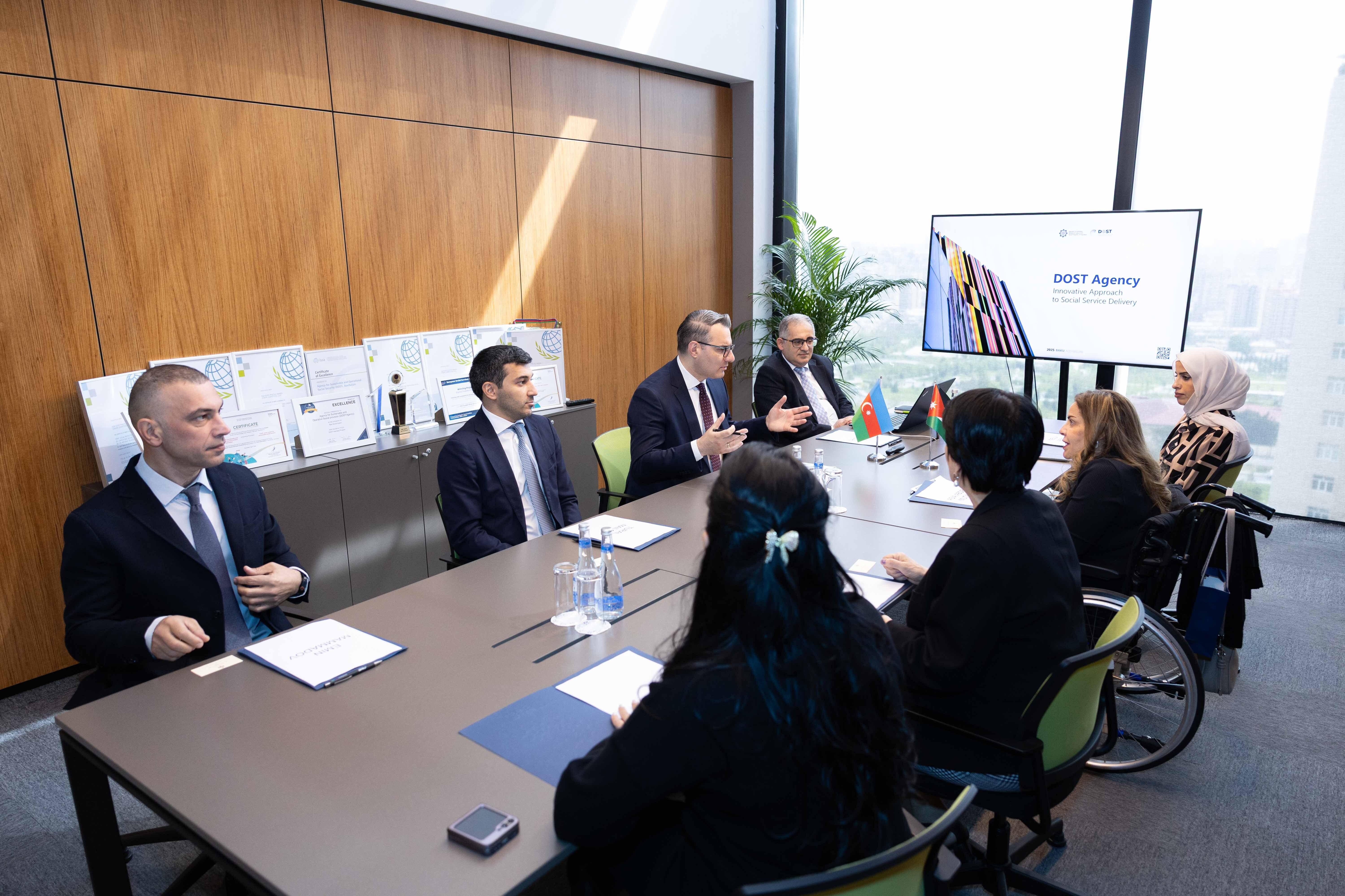 Ölkəmizdə səfərdə olan İordaniya Haşimilər Krallığı Senatının üzvü, Əlilliyi olan Şəxslərin Komitəsinin sədri Asia Abdel Mutaleb Yaghinin və Cibuti Respublikasının Əlilliyi Olan Şəxslər üzrə Milli Agentliyinin Baş Direktoru Doualeh Said Mahamoudun rəhbərlik etdikləri nümayəndə heyətləri DOST Agentliyində olublar.