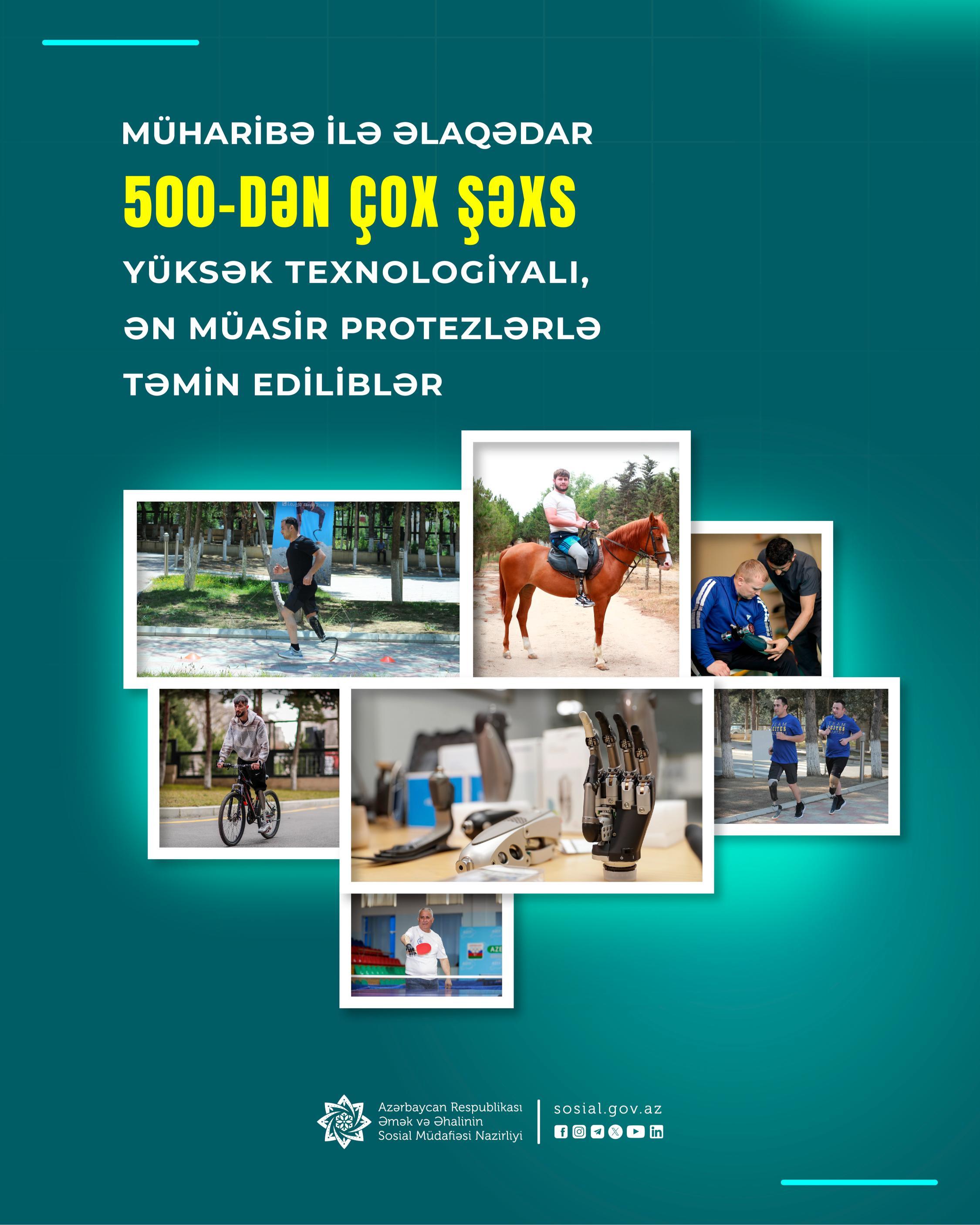 Möhtəşəm tarixi Zəfərimizlə başa çatan Vətən müharibəsindən sonra Əmək və Əhalinin Sosial Müdafiəsi Nazirliyi tərəfindən bu kateqoriyaya aid 500-dən çox hərbçi yüksək texnologiyalı, ən müasir protezlərlə təmin olunub.