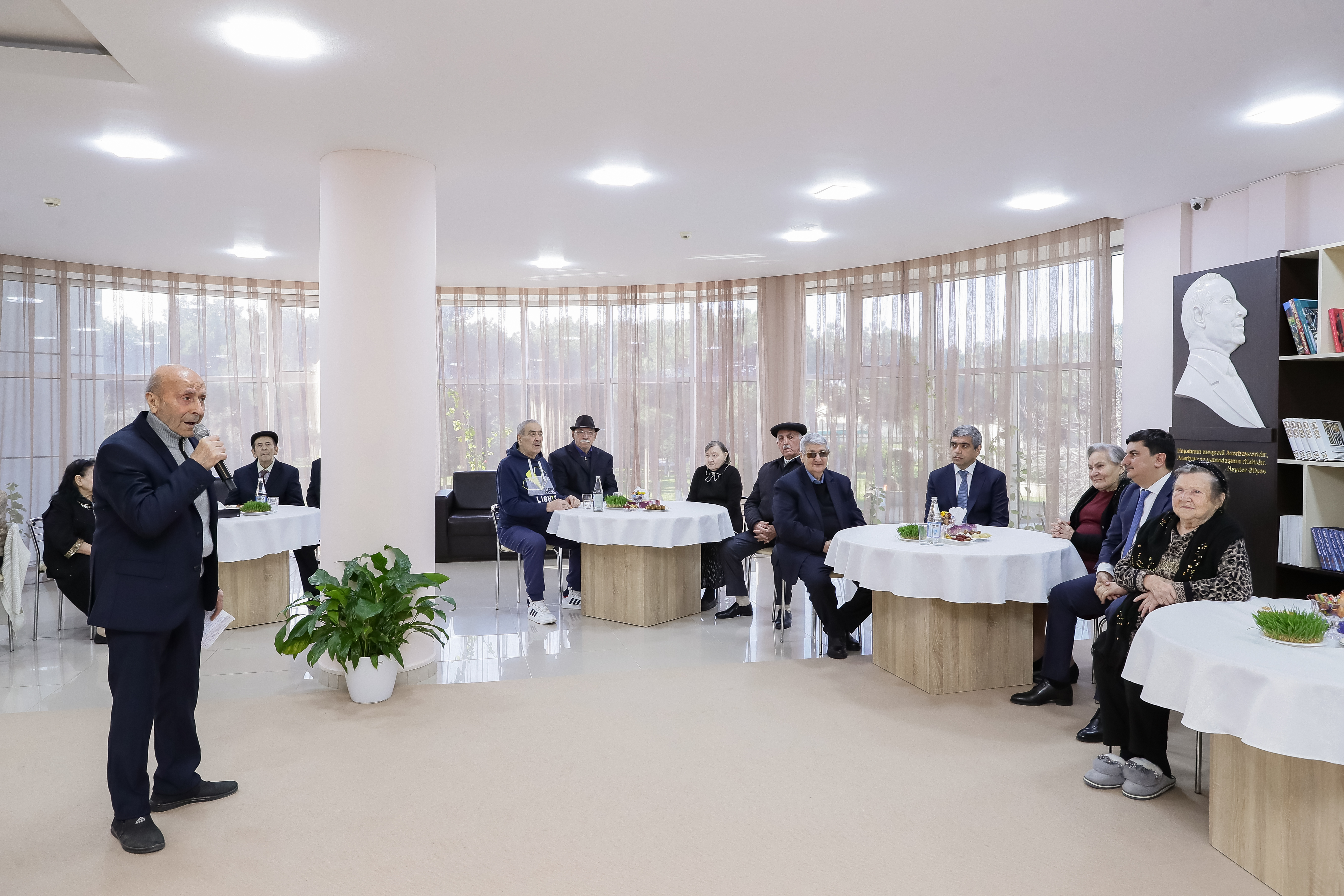 Nazir söhbət zamanı müəssisədə sakinlərin yaşayış şəraitinin, stasionar şəraitdə keyfiyyətli sosial xidmətlərlə təminatının daim diqqətdə saxlandığını vurğulayıb. Görüşdə bir neçə ahıl şəxs öz yaradıcılıq qabiliyyətlərini, ifaçılıq bacarıqlarını də nümayiş etdirib.
