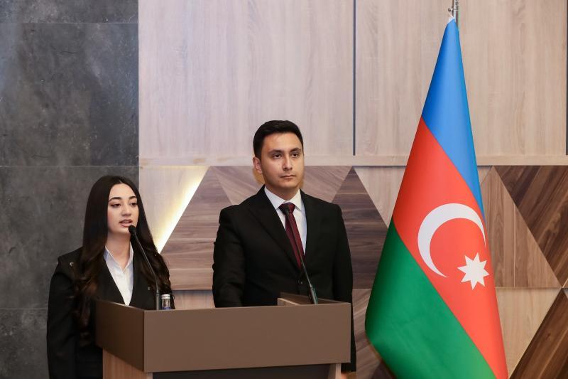 Nazirliyin Dövlət qulluğu və kadr məsələləri şöbəsinin müdiri Nərmin Bayramova “Azərbaycan Respublikasında dövlət qulluğunun inkişafı 25 il” mövzusunda çıxış edib. Nazirlik sistemində dövlət qulluğunun inzibati vəzifələri üzrə vakant yerlərə işə qəbul prosesi, bu sahədə görülmüş işlərin nəticələri haqqında məlumat verilib. Tədbirdə Azərbaycanın Dövlət Himni səslənib və Nazirlik sistemində dövlət qulluğunun inzibati vəzifələrinə işə qəbul olunan 42 nəfər əməkdaş and içib.