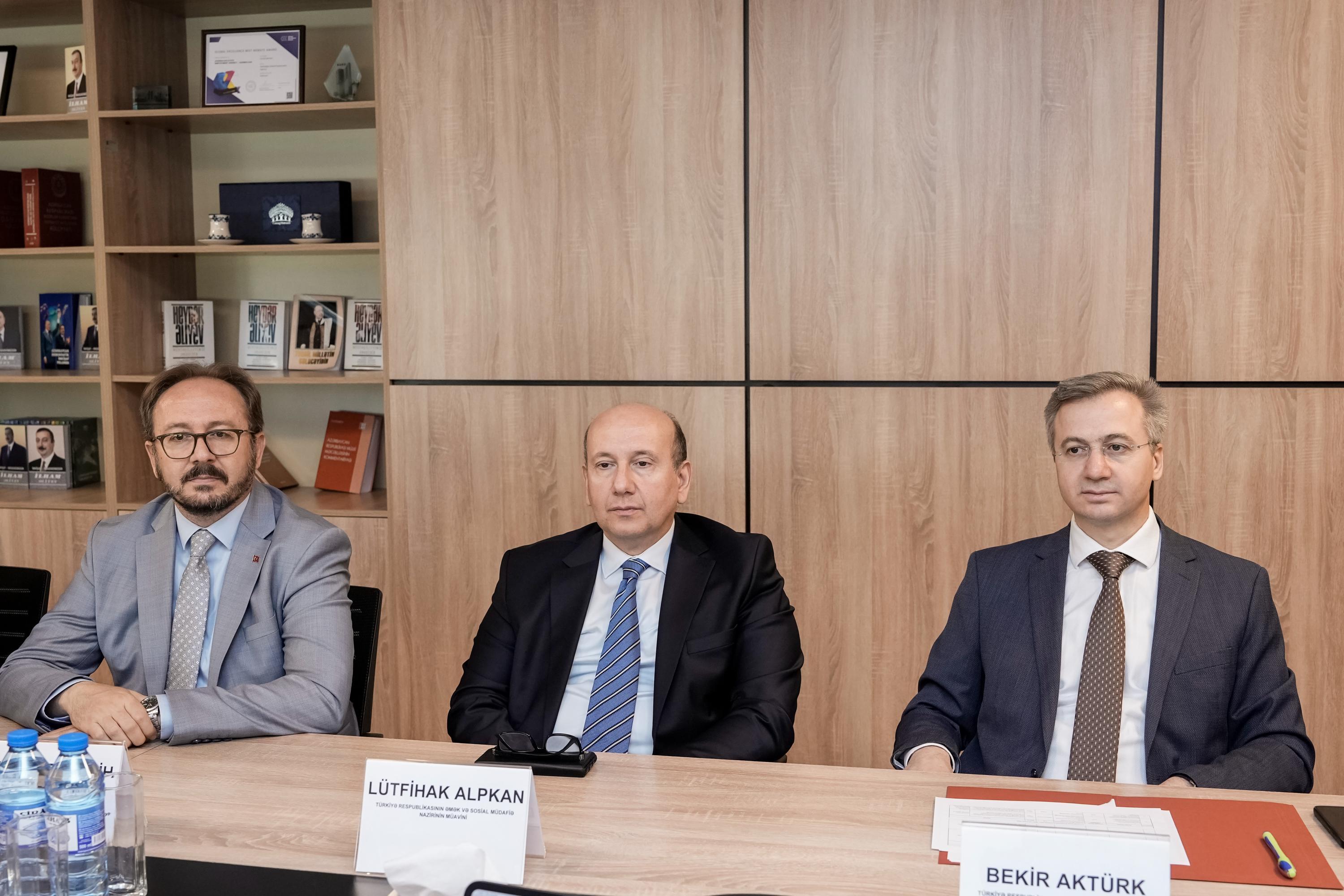 Əmək və Əhalinin Sosial Müdafiəsi Nazirliyində Türkiyə Respublikasının Əmək və Sosial Müdafiə Nazirliyinin Rəhbərlik və Təftiş Başqanlığının sədri Bekir Aktürkün başçılıq etdiyi nümayəndə heyəti ilə görüş olub.