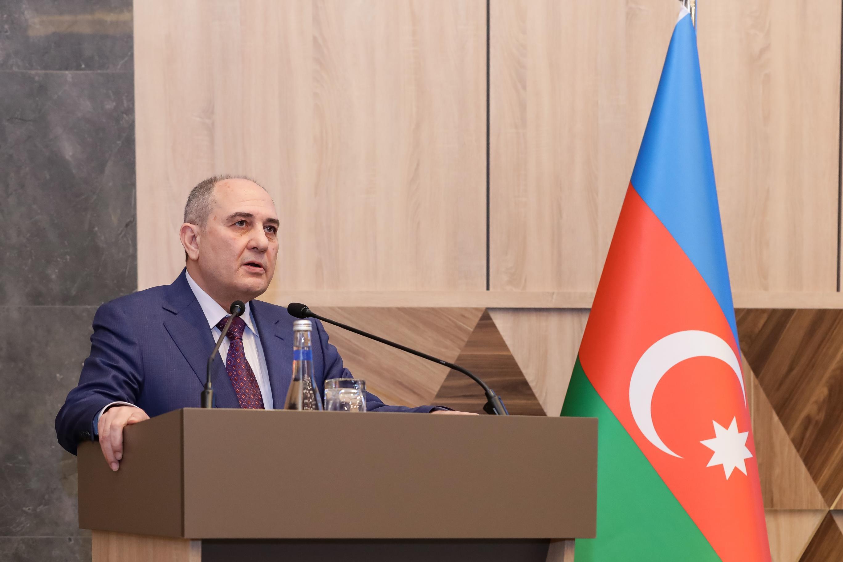Müasir müstəqil Azərbaycan dövlətinin memarı və qurucusu Ümummilli Lider Heydər Əliyevin ölkəmizin sosial inkişaf strategiyasını da formalaşdırdığını diqqətə çatdıran nazir qeyd edib ki, Ulu Öndərin müəllifi olduğu, 1995-ci ildə qəbul edilən müstəqil Azərbaycanın ilk milli Konstitusiyasında da Azərbaycan vətəndaşlarına layiqli həyat səviyyəsinin təmin edilməsi dövlətin ali məqsədi kimi təsbit olunub. Ümummilli Lider Heydər Əliyevin müdrik və uzaqgörən siyasətinin möhtərəm Prezidentimiz cənab İlham Əliyev tərəfindən yüksək səviyyədə davam etdirilməsi nəticəsində Azərbaycan mühüm tarixi nailiyyətlərə imza atıb, möhtəşəm tarixi Zəfər qazanıb.