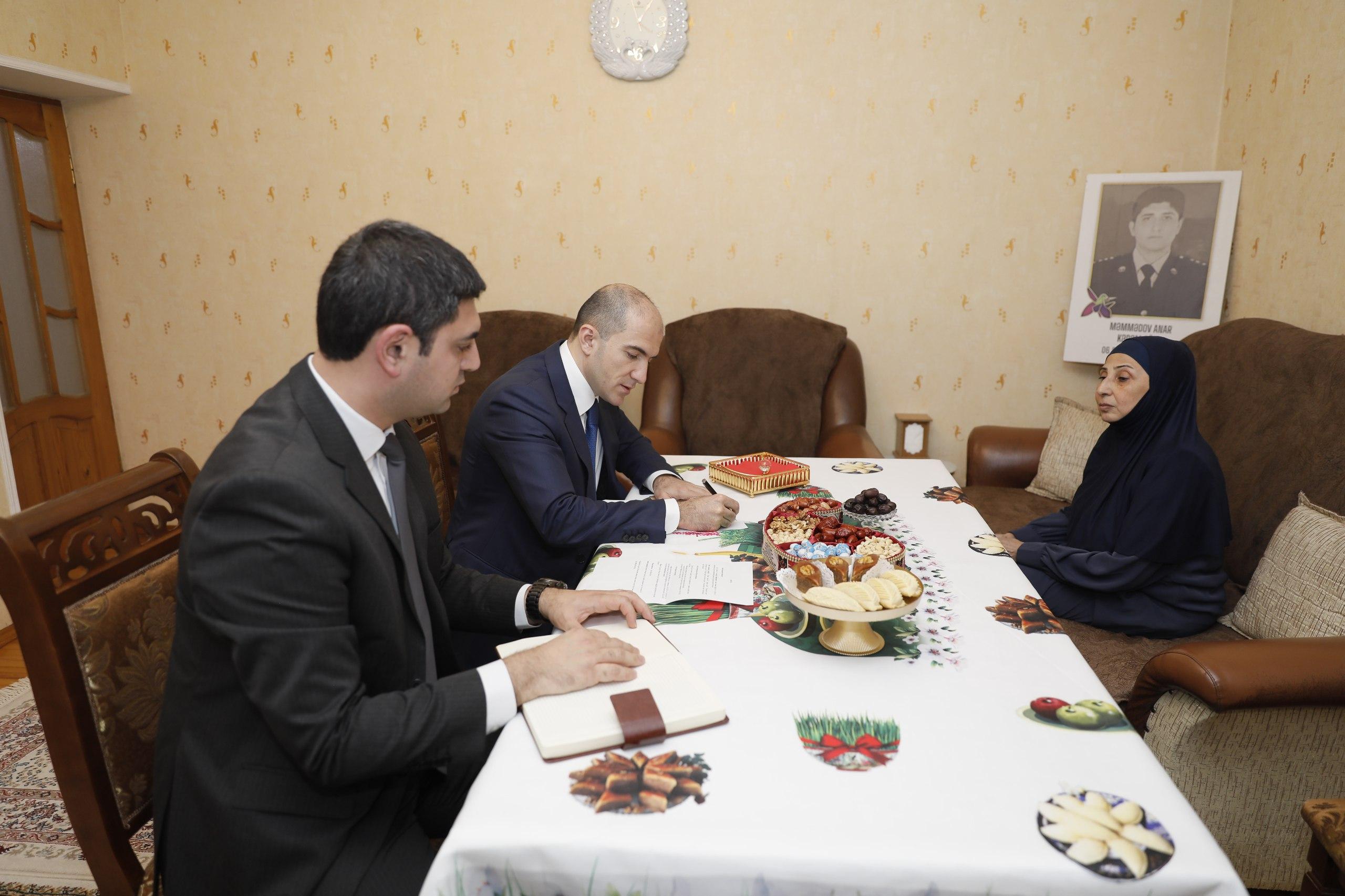 Əmək və Əhalinin Sosial Müdafiəsi Nazirliyinin Aparatının rəhbəri Fuad Musayev tarixi Zəfərimizlə başa çatan 44 günlük Vətən müharibəsi zamanı Xocavənd istiqamətində gedən döyüşlərdə şəhidlik zirvəsinə ucalan Anar Məmmədovun ailəsini ziyarət edib.