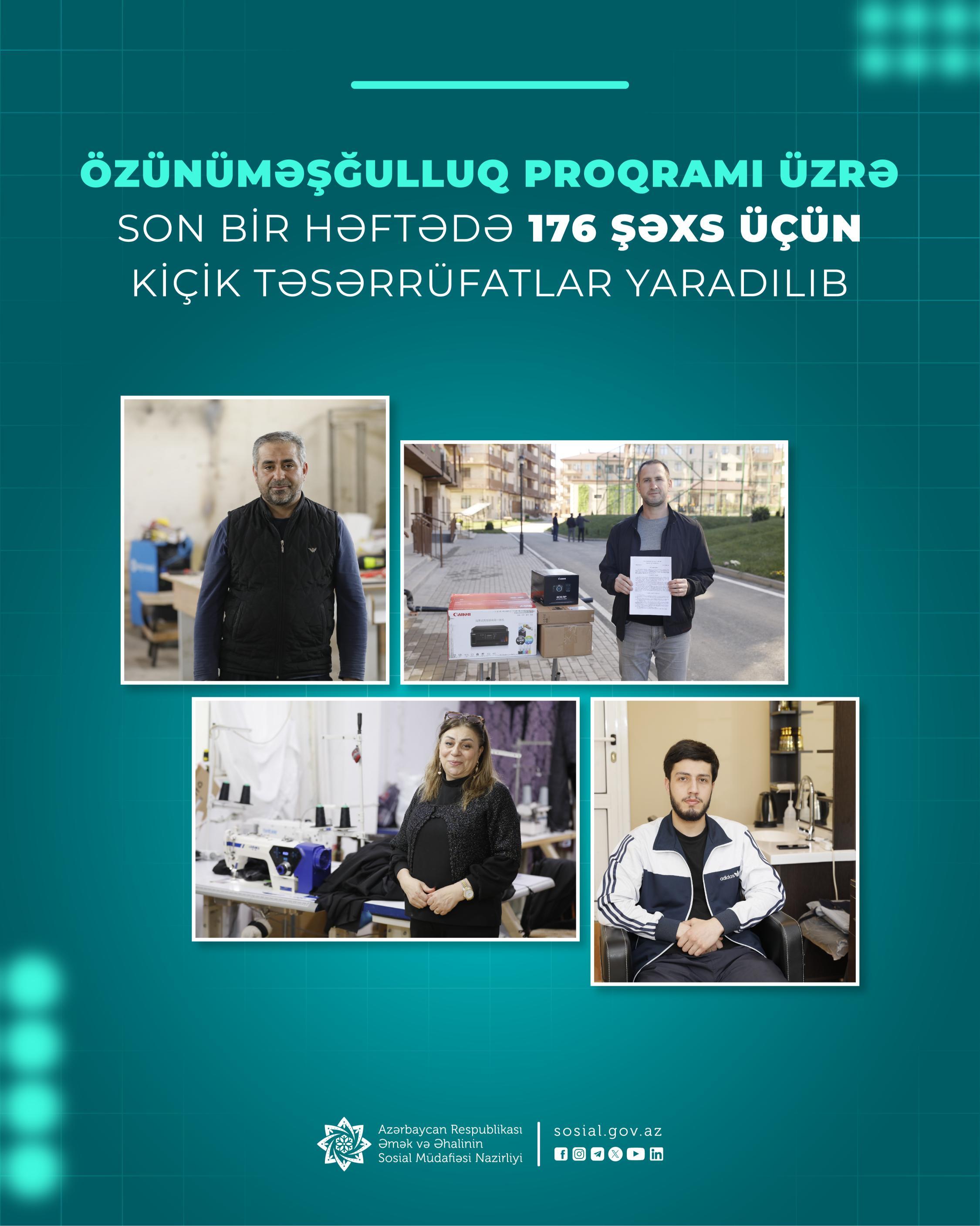 Son bir həftədə paytaxt və regionlarda 176 nəfər işsiz və işaxtaran şəxs bu proqram çərçivəsində aktivlərlə təmin olunub.