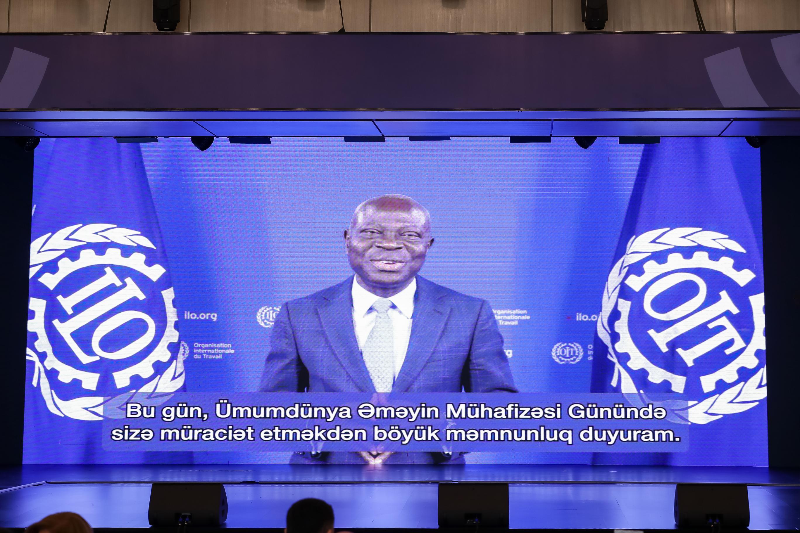 Beynəlxalq Əmək Təşkilatının (BƏT) Baş direktoru cənab Jilber Hunqbo, Beynəlxalq Həmkarlar İttifaqları Konfederasiyasının Baş katibi Luk Trianql, Türkiyənin əmək və sosial müdafiə naziri Vedat İşıkhan, BƏT-in Əmək administrasiyası, əmək müfəttişliyi və əməyin mühafizəsi bölməsinin rəhbəri Yoakim Pintado Nunes konfransa videomüraciət ünvanlayaraq təbrik və fikirlərini çatdırıblar.