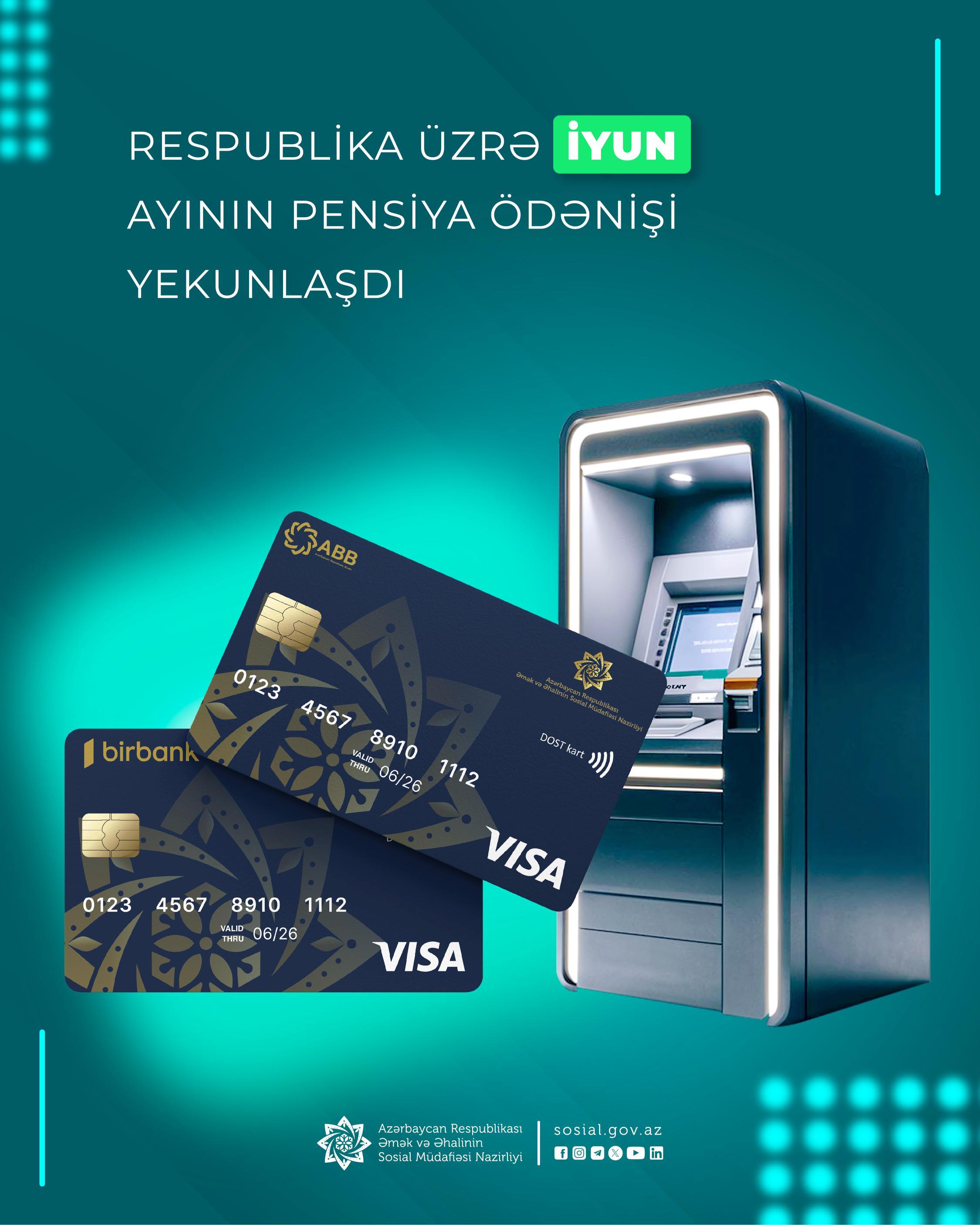 İyunun 5-də Bakı, Sumqayıt şəhərləri, Abşeron rayonu, Naxçıvan MR, bu gün isə ölkəmizin digər bölgələri üzrə iyun ayının pensiyaları, habelə güzəştli şərtlərlə təyin edilmiş pensiyalar ödənilib.