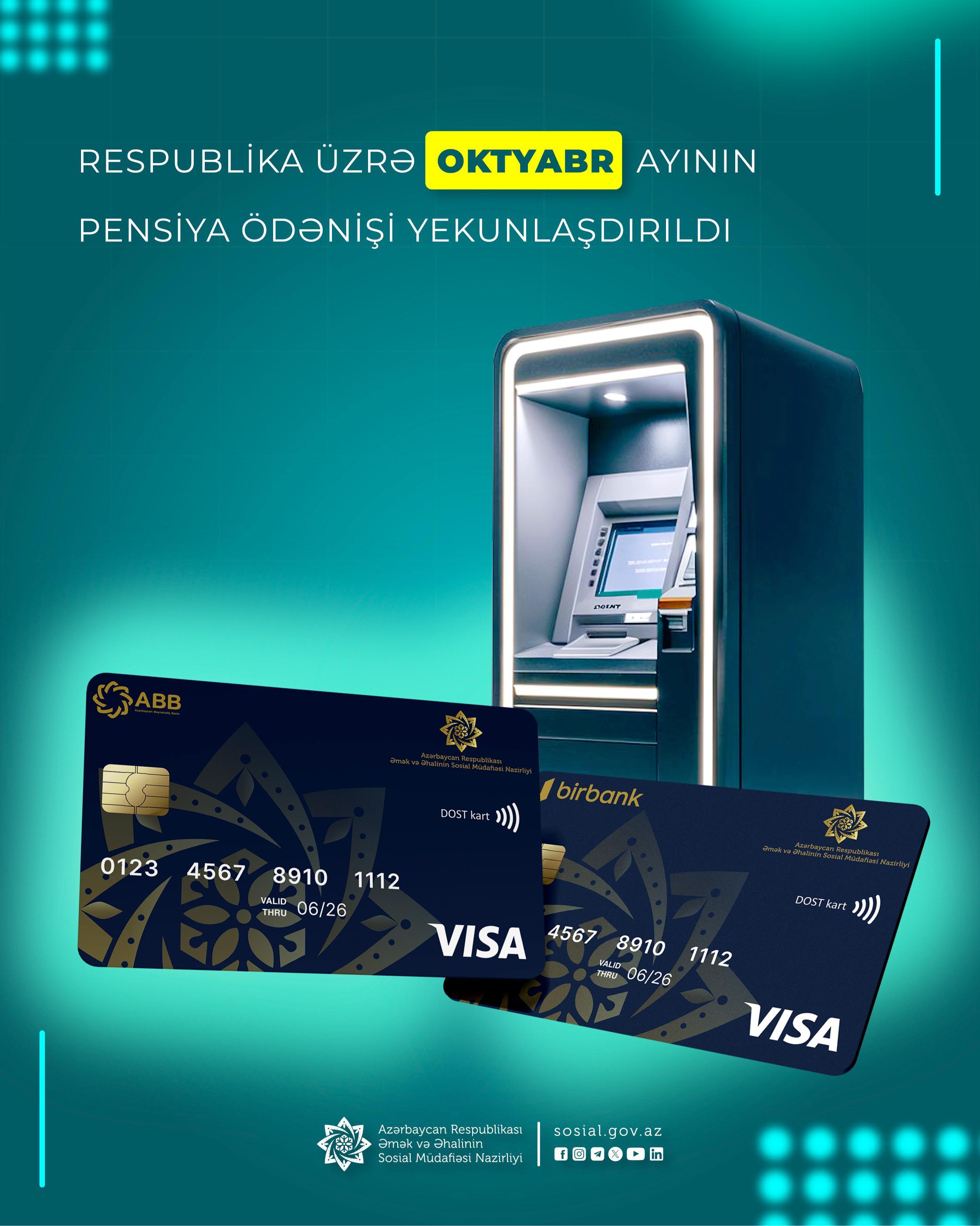 Vətəndaşlar pensiyalarını bank kartları vasitəsilə müvafiq bankların bankomatlarından əldə edə bilərlər.