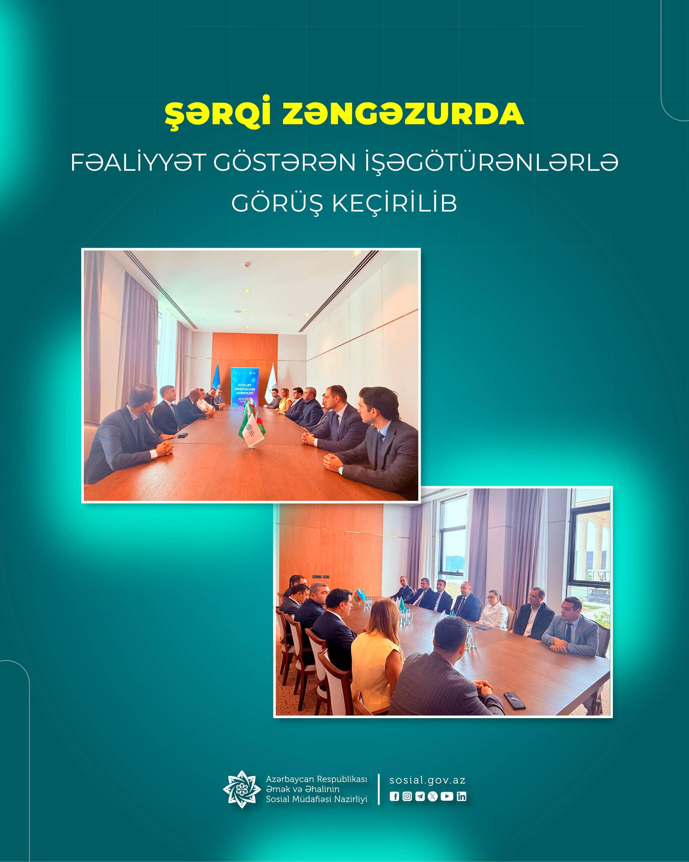 Laçın rayonunda Azərbaycan Respublikası Prezidentinin xüsusi nümayəndəliyinin və Əmək və Əhalinin Sosial Müdafiəsi Nazirliyinin tabeliyində Dövlət Məşğulluq Agentliyinin birgə təşkilatçılığı ilə Laçında Şərqi Zəngəzur iqtisadi rayonunda fəaliyyət göstərən işəgötürənlərlə görüş keçirilib.
