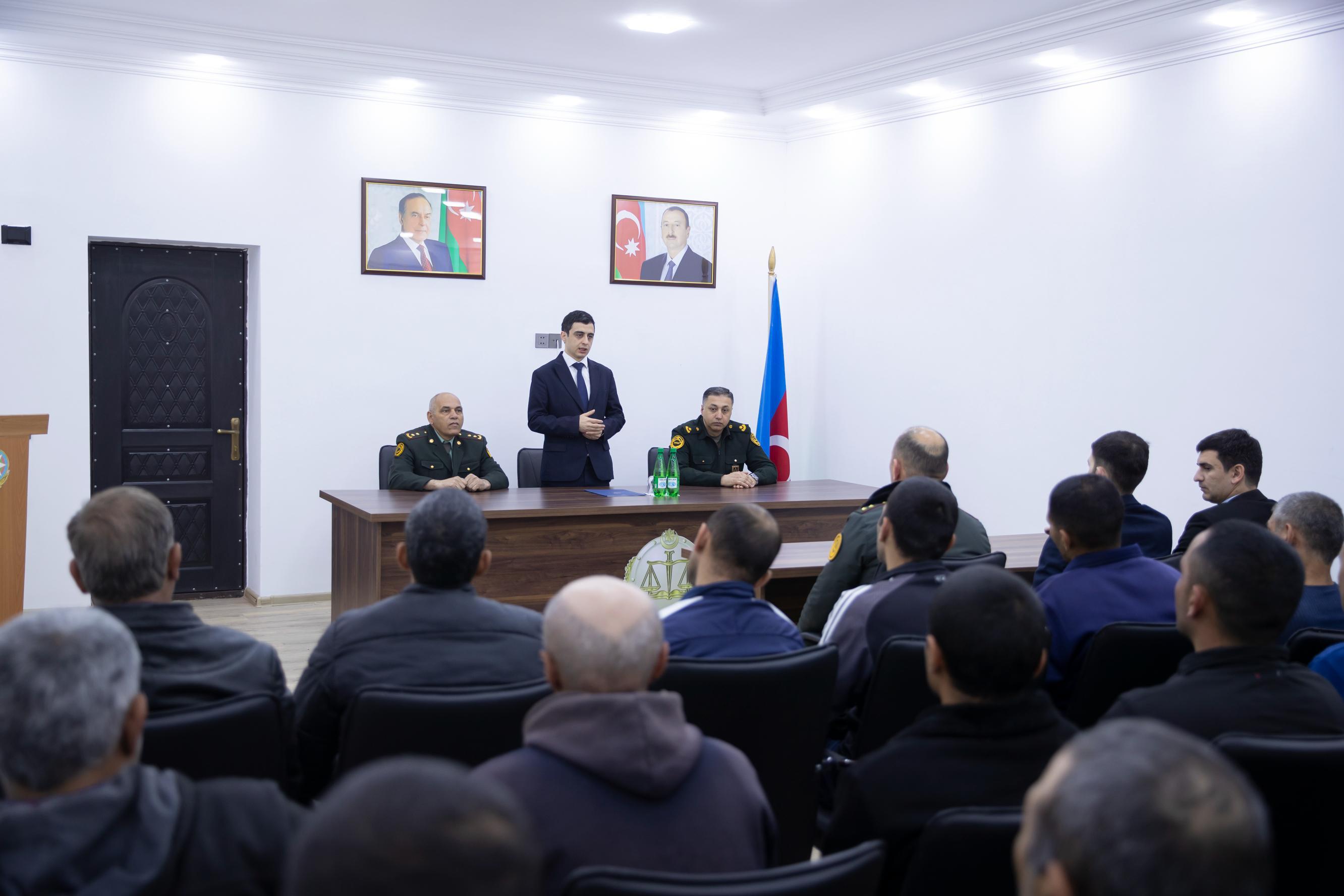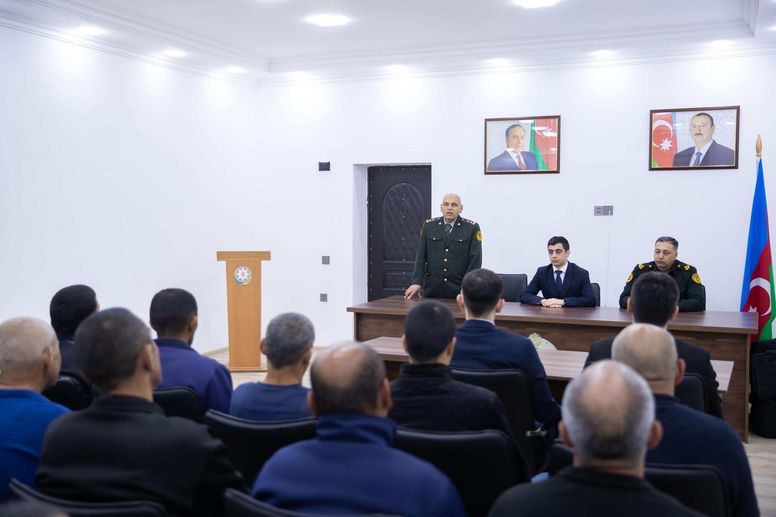 Habelə cəza çəkməkdən azad olan şəxslərin sosial reabilitasiyası və adaptasiyası tədbirləri diqqətə çatdırılıb, Həmin şəxslərin ailələrinə səfərlərin təşkil olunduğu, onlarla aparılan qiymətləndirmənin nəticəsindən asılı olaraq müvafiq xidmətlərə cəlb olunduqları bildirilib, məhkumları maraqlandıran suallar cavablandırılıb.