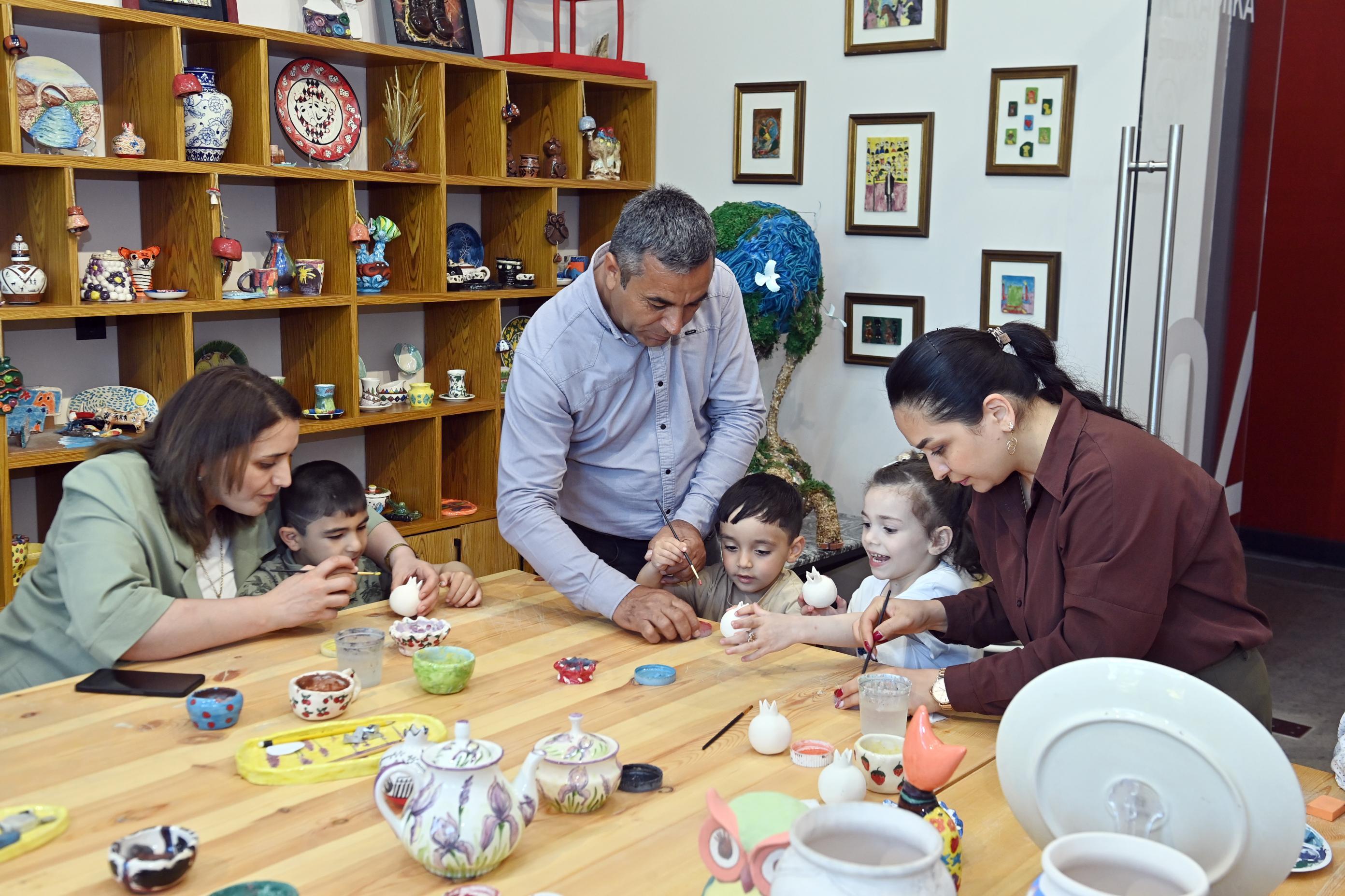 Mərkəzin təlimçiləri tərəfindən qonaqlar üçün dulusçuluq, floristika, xalçaçılıq, muncuqla toxuma və bədii tikmə istiqamətləri üzrə master-klas da keçirilib