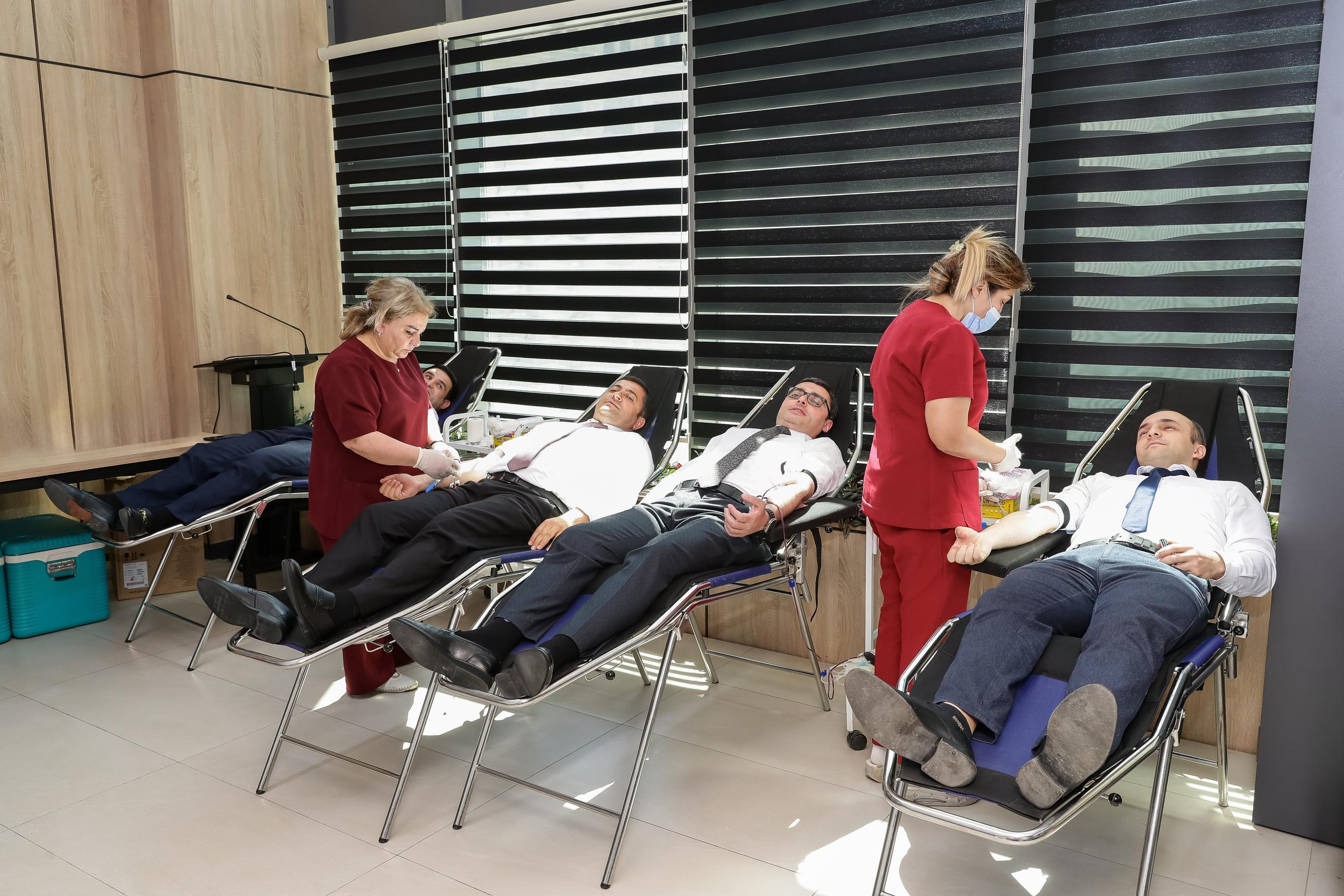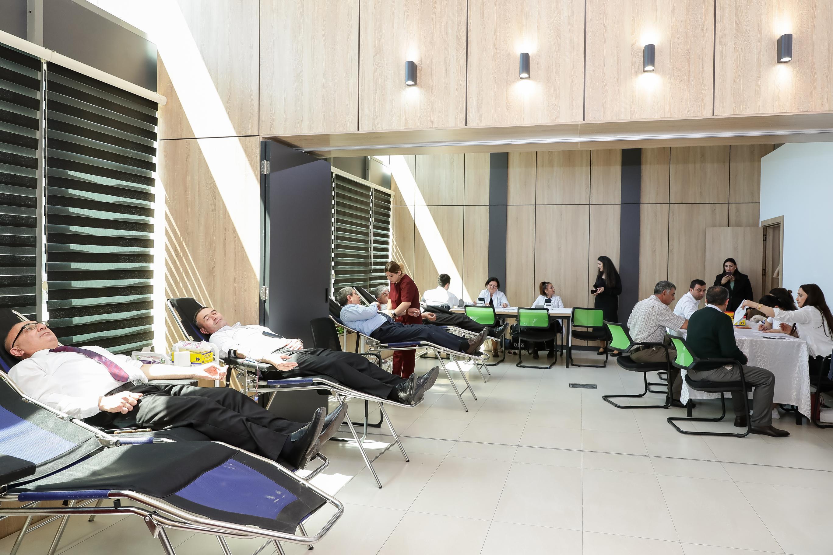 Respublika Qan Bankının həkimləri tərəfindən hər bir donorun sağlamlığı yoxlanıldıqdan sonra onlardan qan götürülüb.