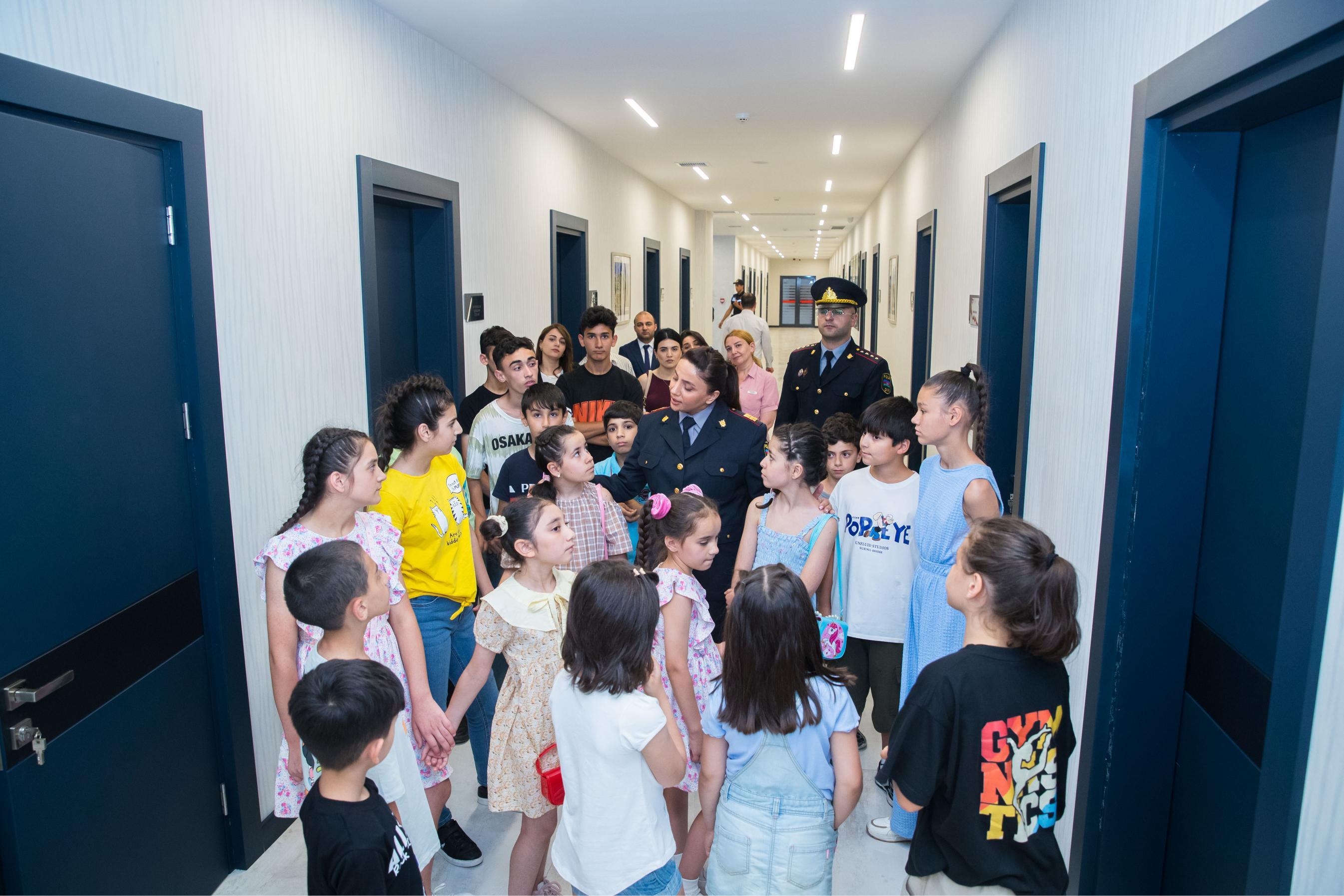 Tədbir çərçivəsində 1, 2 və 3 saylı uşaq evlərinin 20 sakini polis əməkdaşlarının gündəlik iş fəaliyyəti ilə tanış olub, idarənin müxtəlif bölmələrini gəziblər. Onlara hüquq-mühafizə orqanlarının işi, asayişin qorunması və vətəndaşların təhlükəsizliyinin təmin olunması istiqamətində həyata keçirilən tədbirlər barədə məlumat verilib.