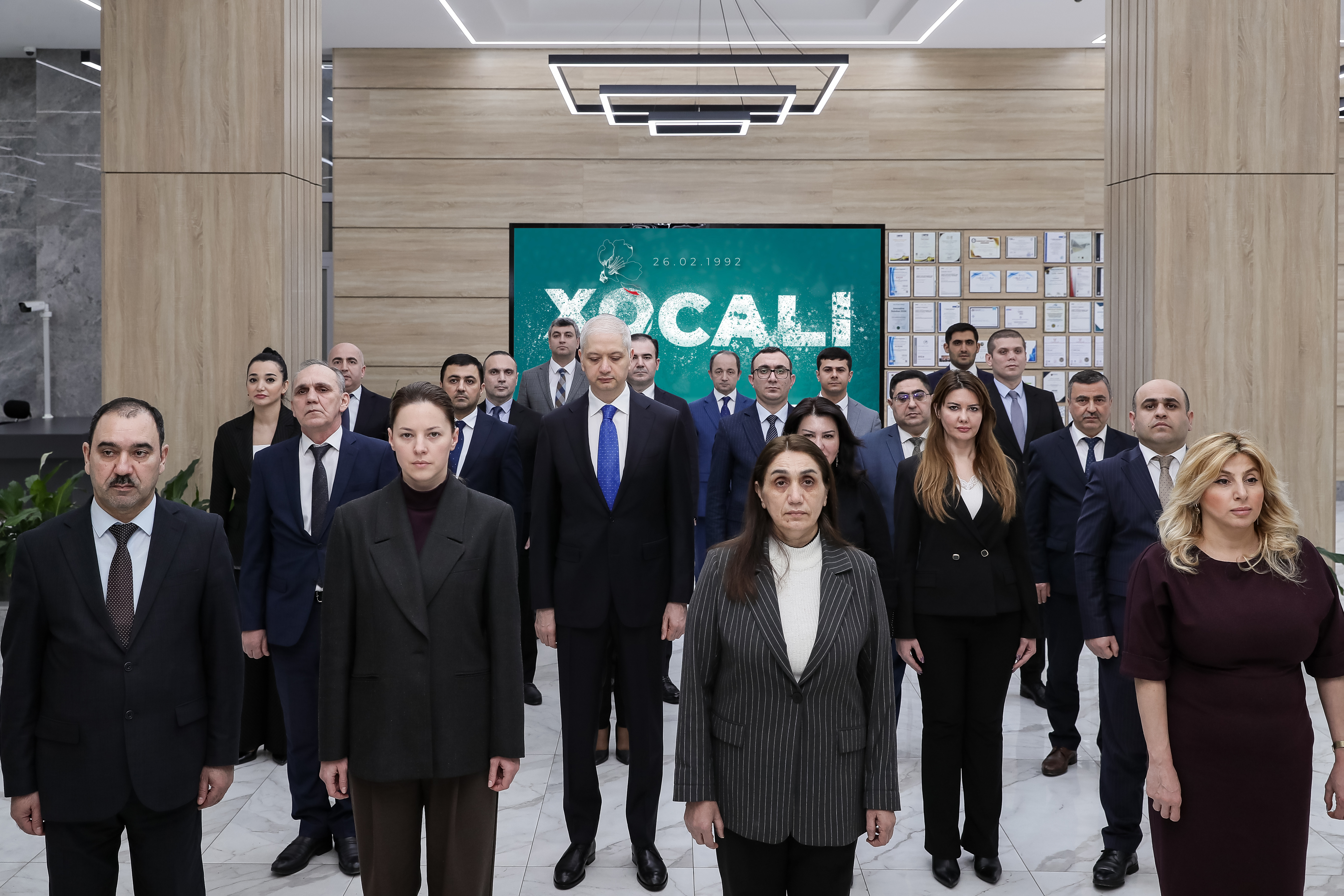 İnsanlığa qarşı ən ağır cinayətlərdən biri olan Xocalı soyqırımının 33-cü ildönümü ilə əlaqədar Əmək və Əhalinin Sosial Müdafiəsi Nazirliyinin kollektivi bu gün saat 17:00-da faciə qurbanlarının xatirəsini bir dəqiqəlik sükutla yad edib.