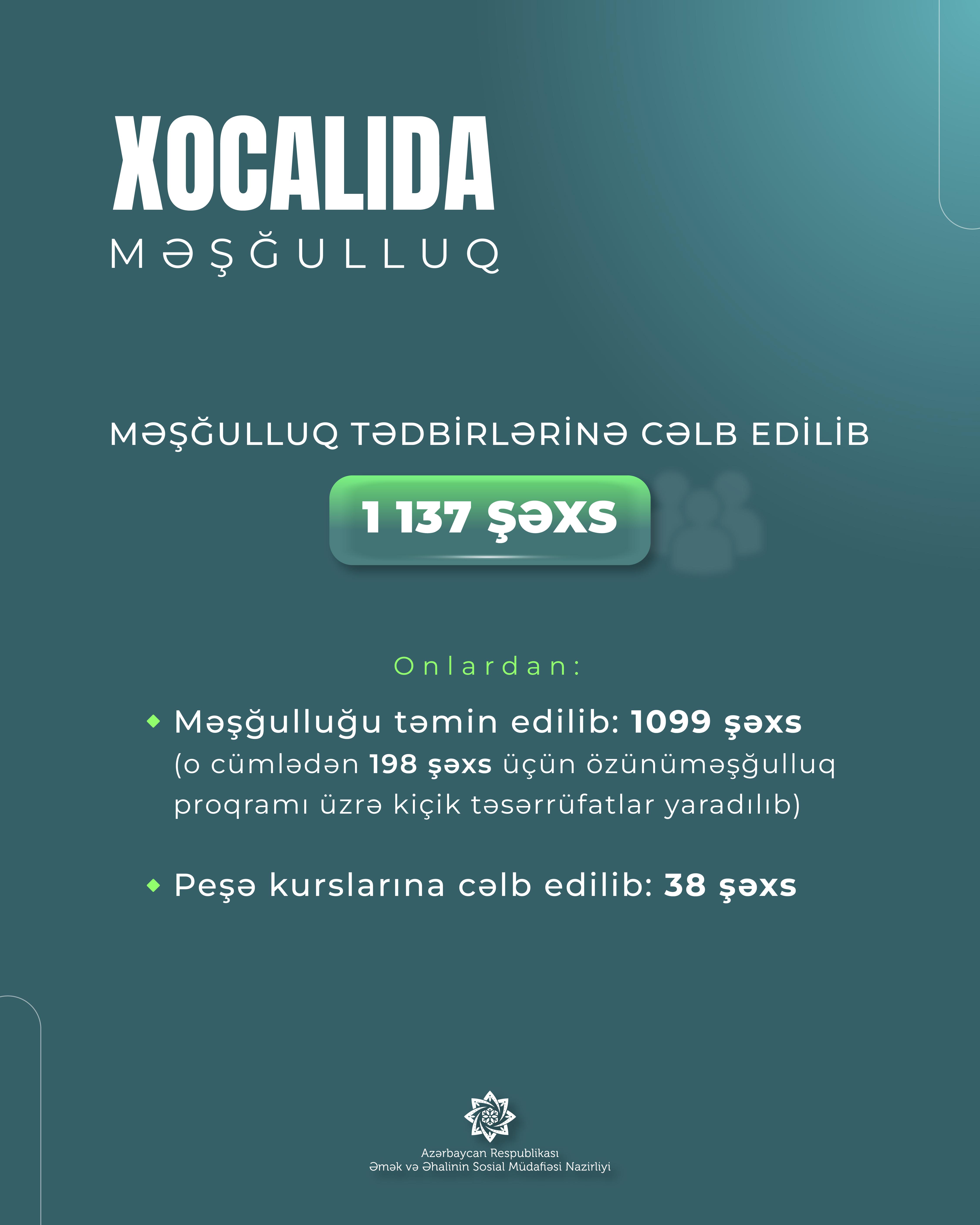 Xocalıya köçürülmüş sakinlərdən 1137 şəxs məşğulluq tədbirlərinə cəlb edilib