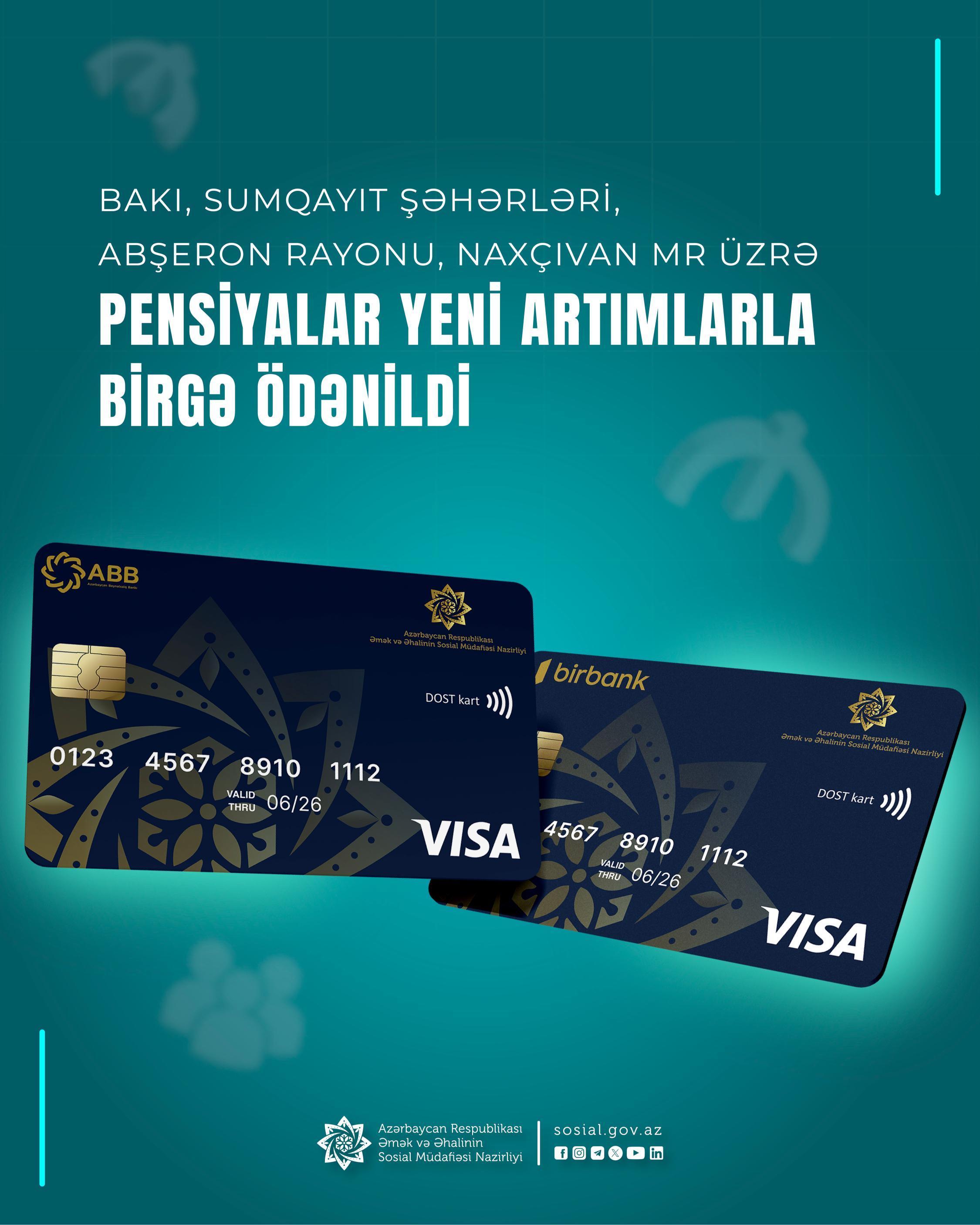 Bakı, Sumqayıt şəhərləri, Abşeron rayonu, Naxçıvan MR üzrə pensiyalar yeni artımlarla birgə ödənildi