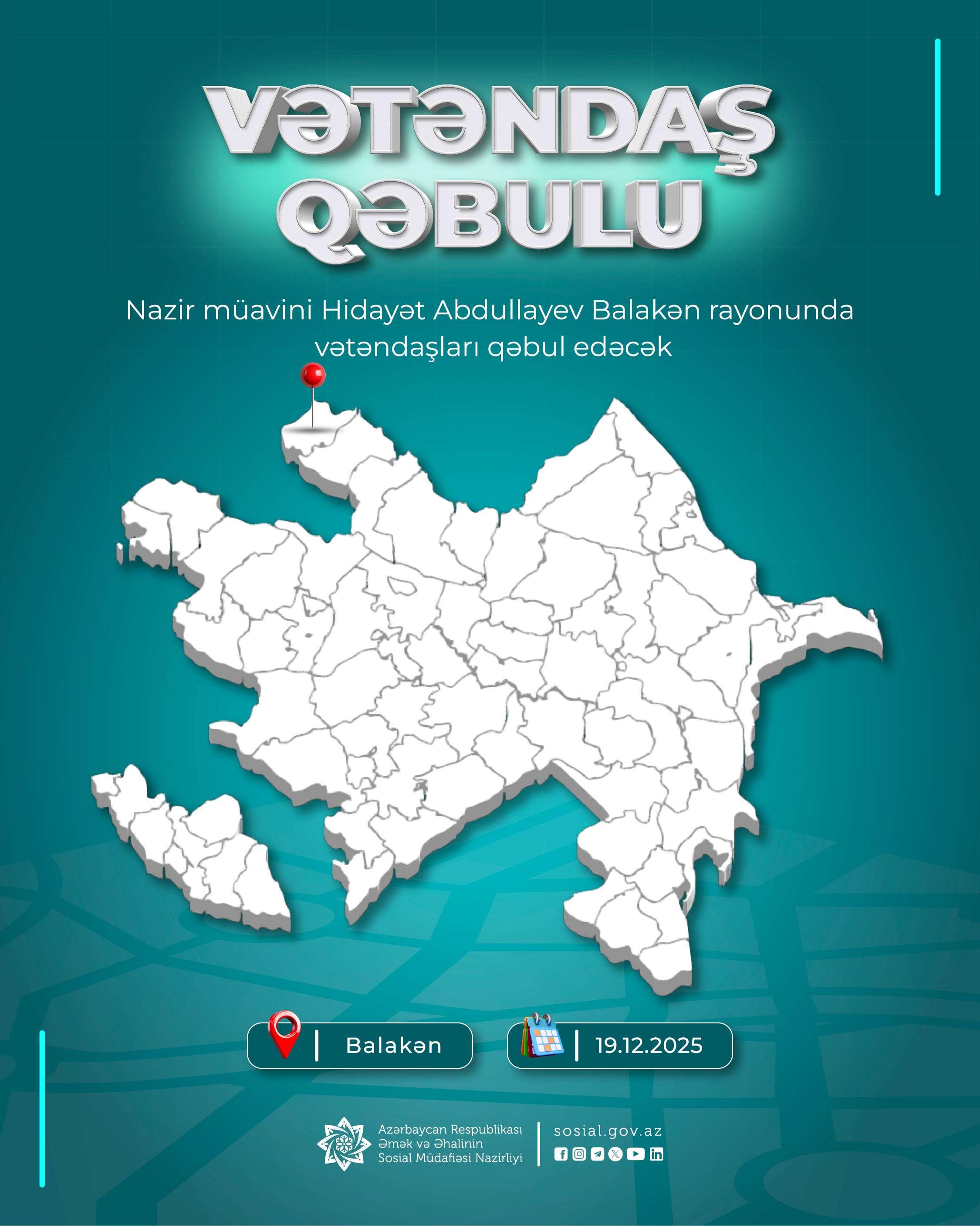Nazir müavini Hidayət Abdullayev Balakən rayonunda vətəndaşları qəbul edəcək
