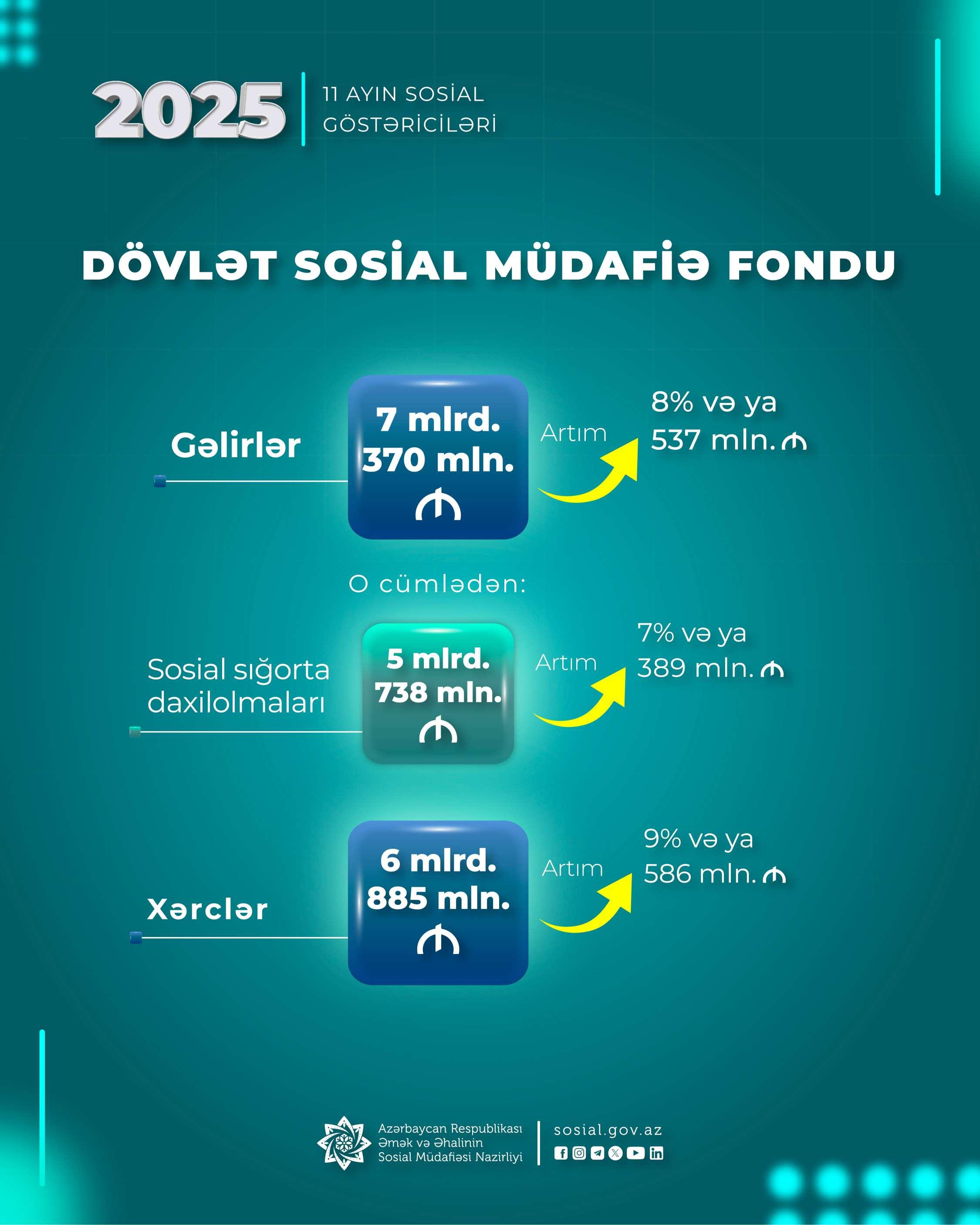 Yanvar-noyabr aylarında DSMF-nin xərcləri 586 mln. manat artaraq 6 mlrd. 885 mln. manat olub