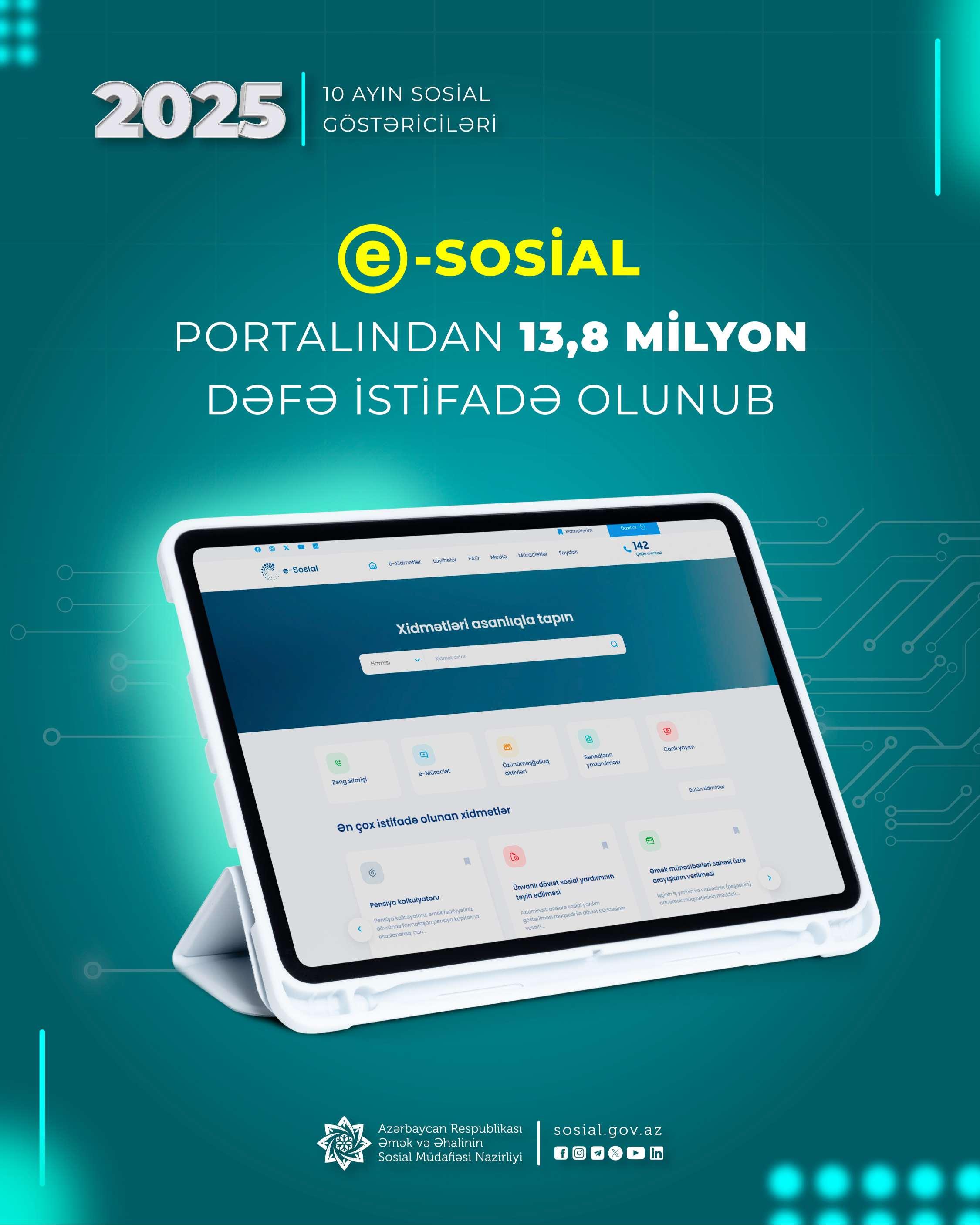 Yanvar-oktyabr aylarında “e-sosial” internet portalından 13,8 milyon dəfə istifadə olunub