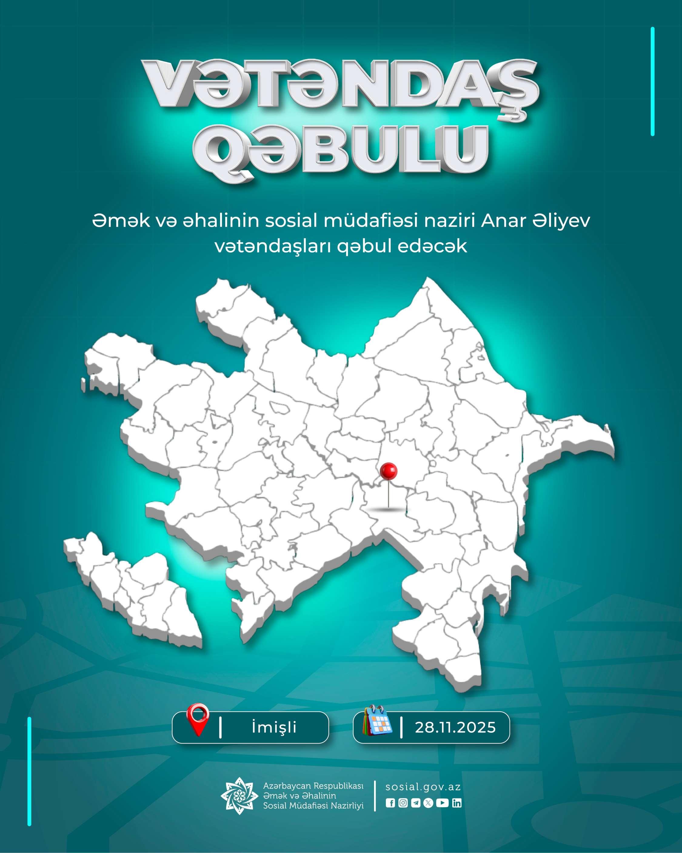 Nazir Anar Əliyev İmişlidə vətəndaşları qəbul edəcək