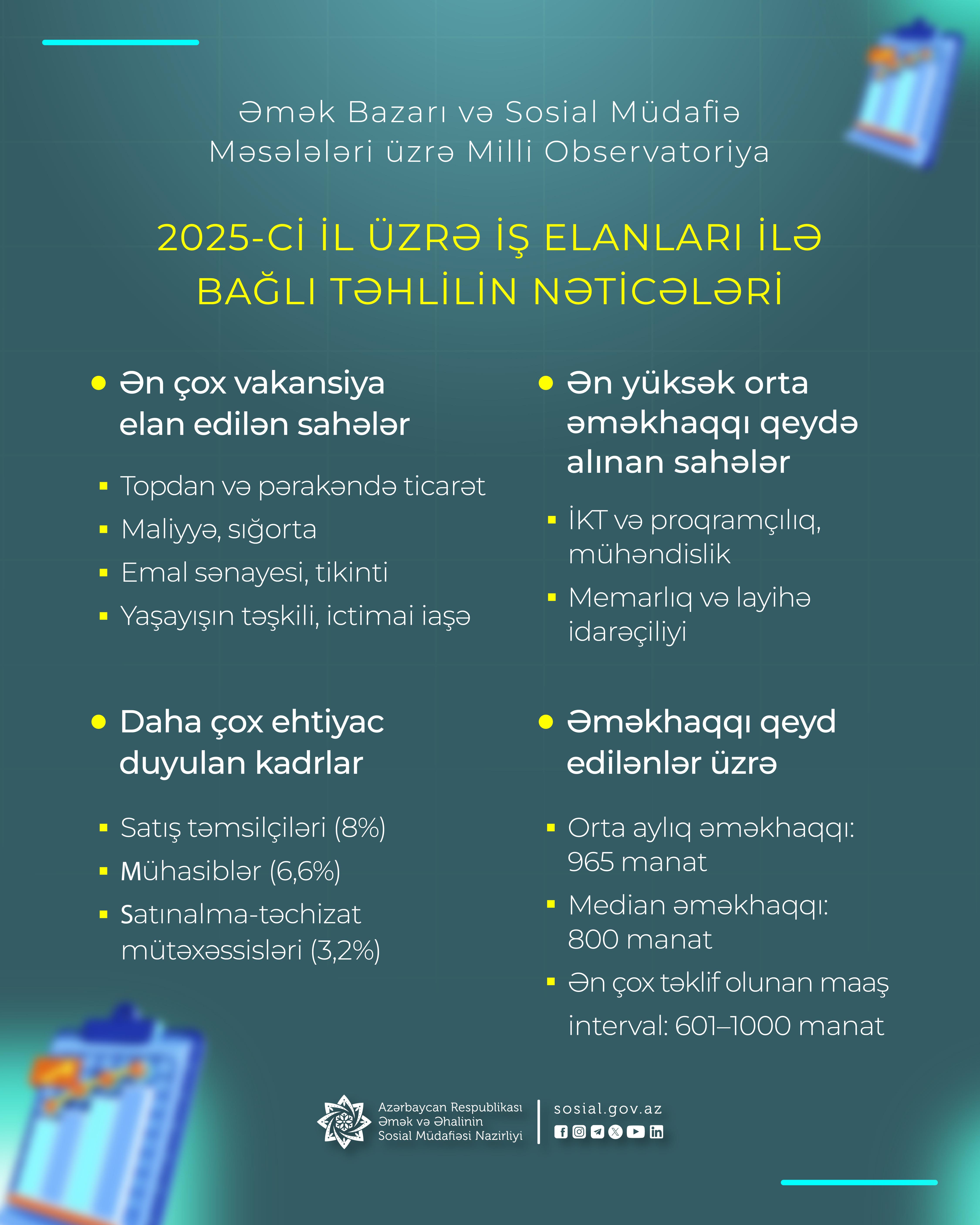 Milli Observatoriya tərəfindən 2025-ci il üzrə ən çox tələb olunan peşələr müəyyən olunub