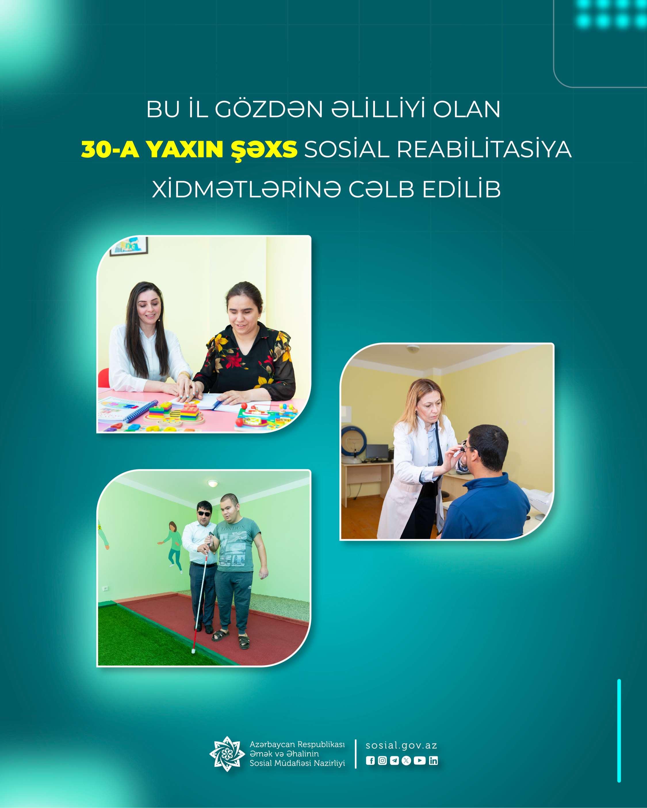 Bu il Sosial Xidmətlər Agentliyi gözdən əlilliyi olan 30-a yaxın şəxsi sosial reabilitasiya xidmətlərinə cəlb edib