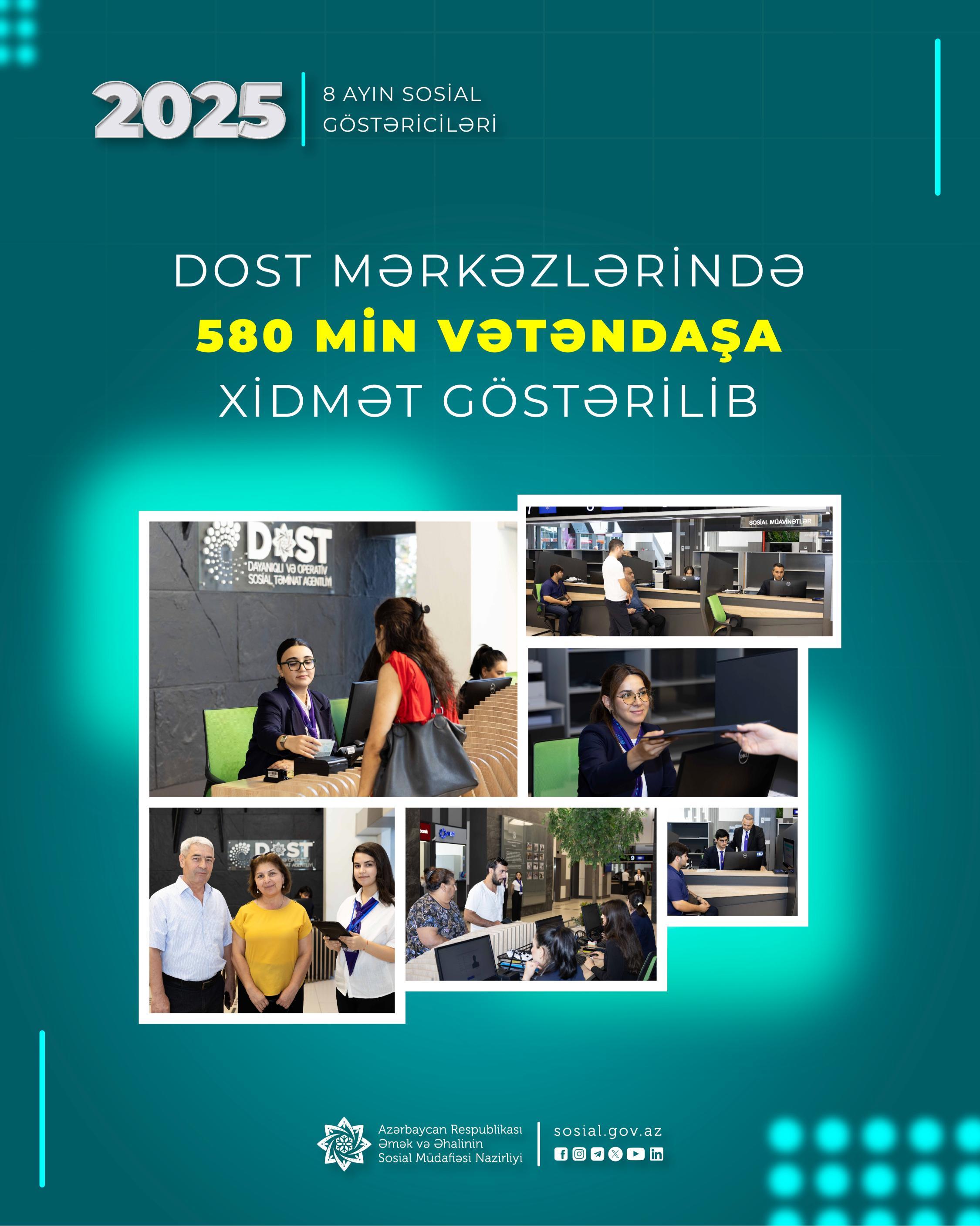 Yanvar-avqust aylarında DOST mərkəzlərində 580 min vətəndaşa xidmət göstərilib