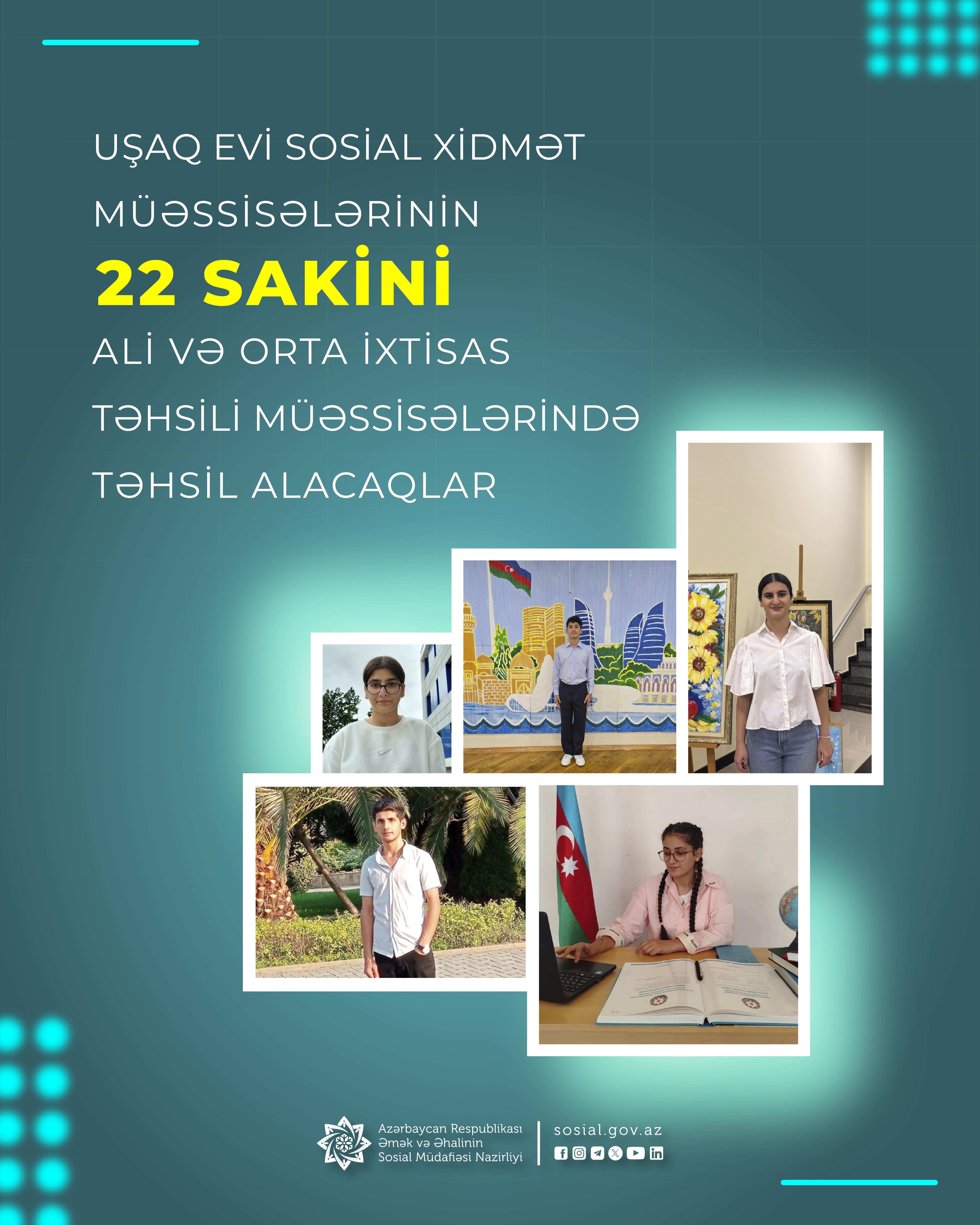 Uşaq evi sosial xidmət müəssisələrinin 22 sakini ali və orta ixtisas təhsili müəssisələrində təhsil alacaqlar